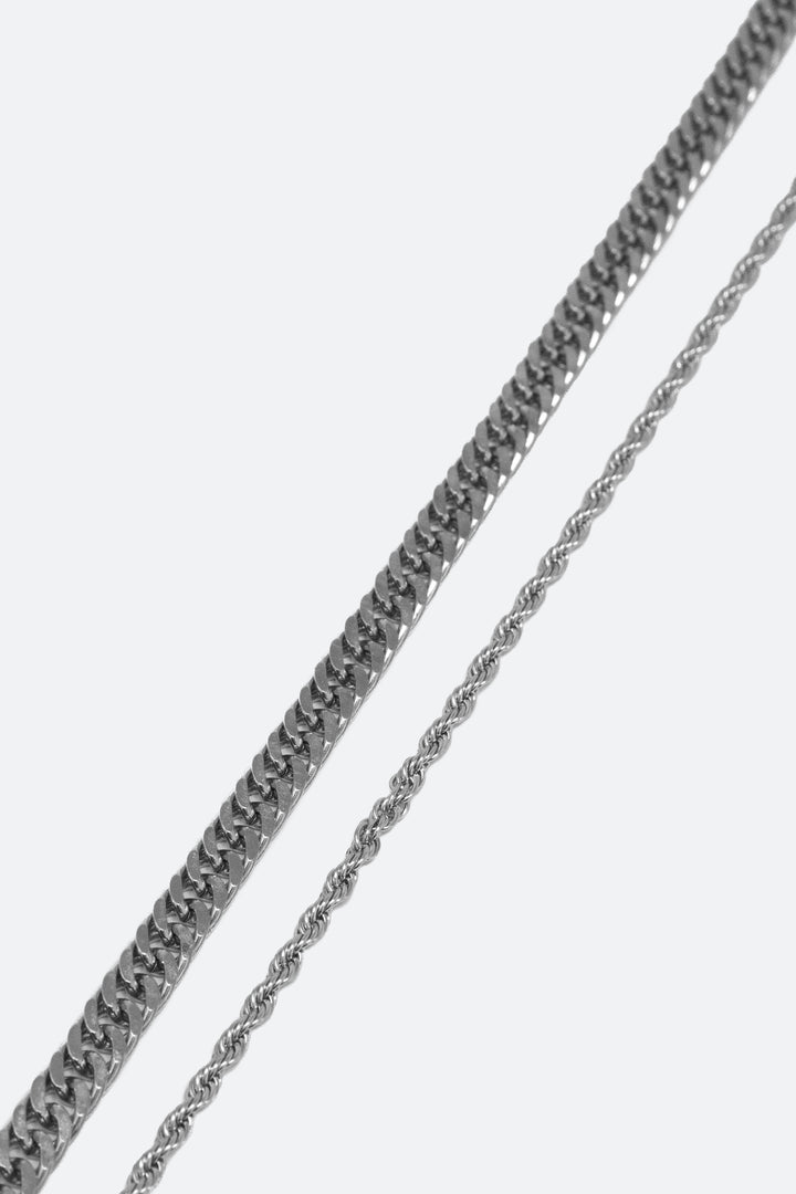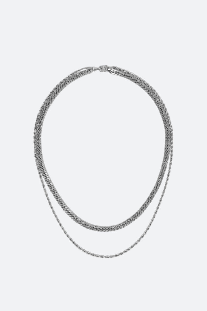 the A1 Double Chain is constructed of stainless steel and features two different link chains with a spring ring clasp.