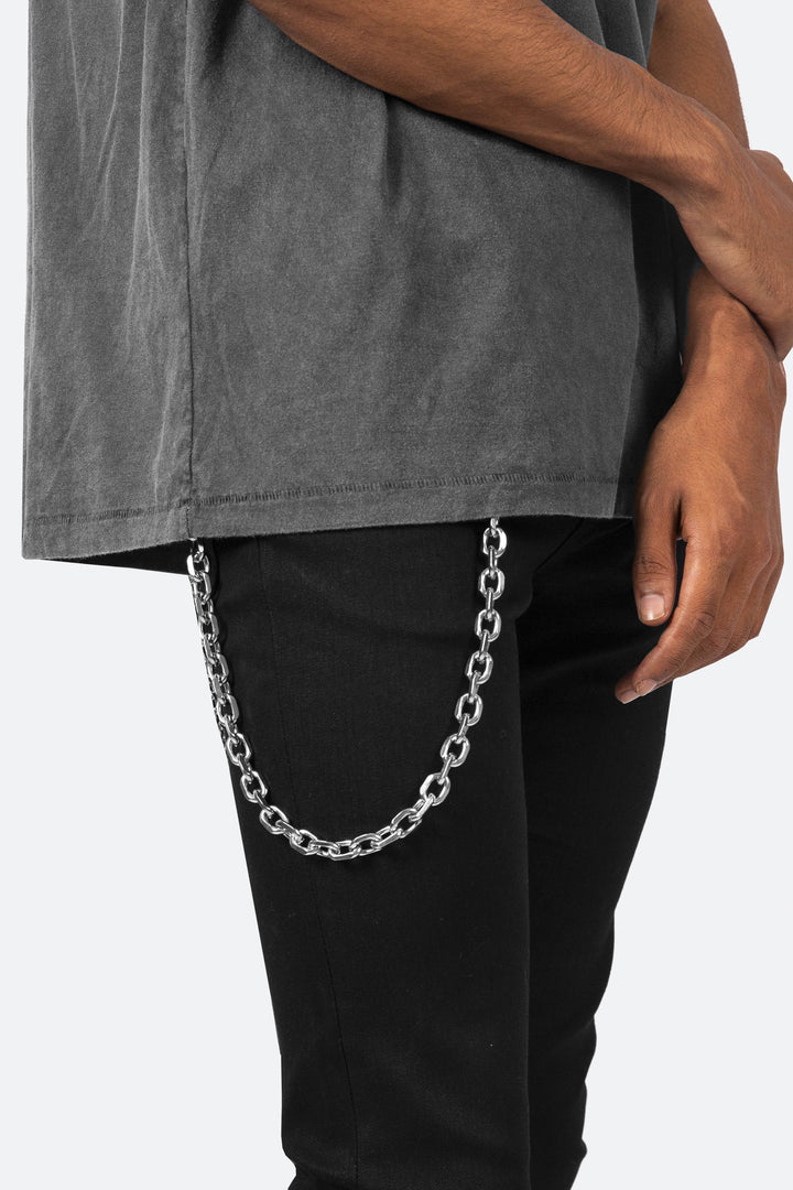 the A7 Link Wallet Chain is constructed of stainless steel and features a stainless steel swivel clip at each end.