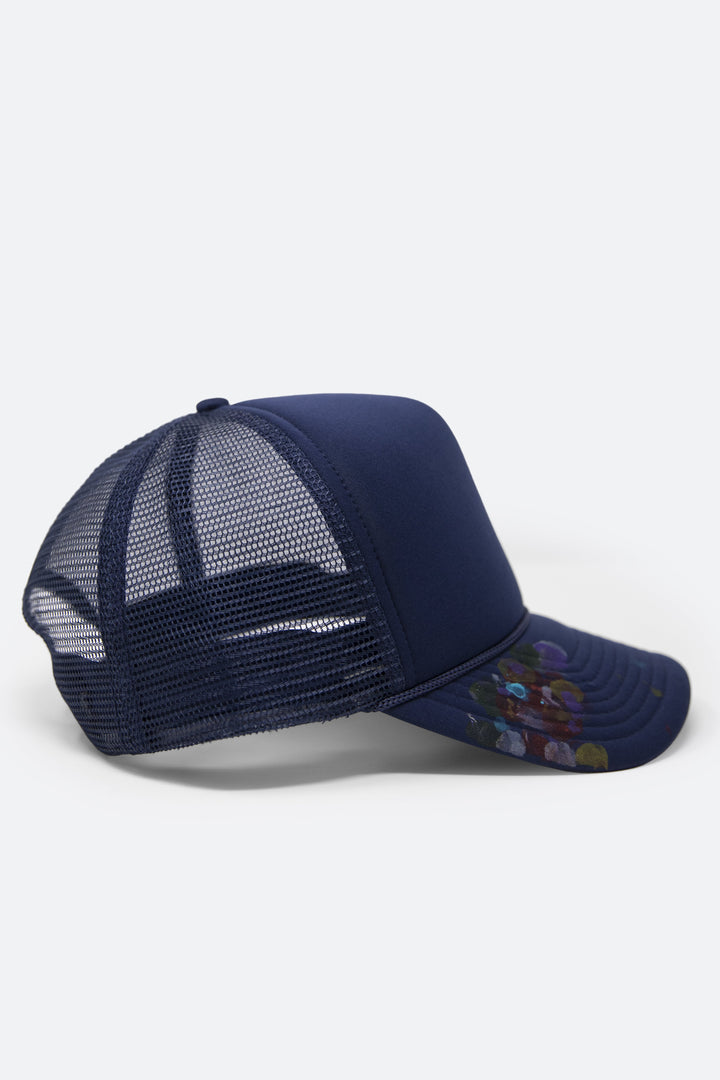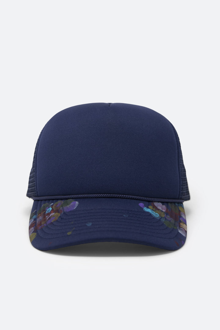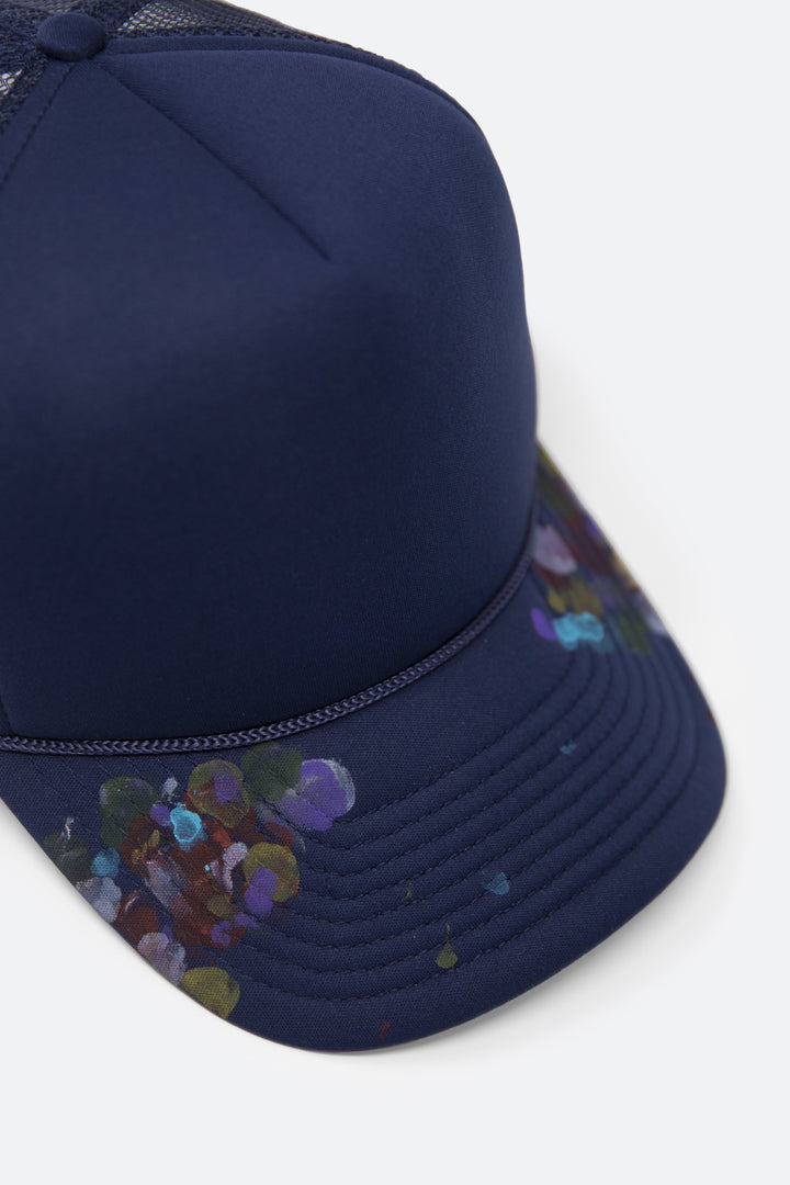 the Painter Trucker Cap is constructed from a neoprene front panel and brim, mesh back, and finished with a paint details at the front.