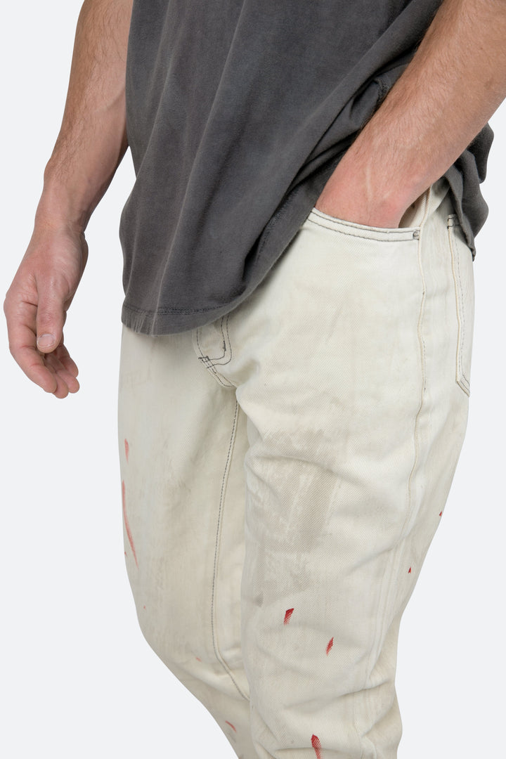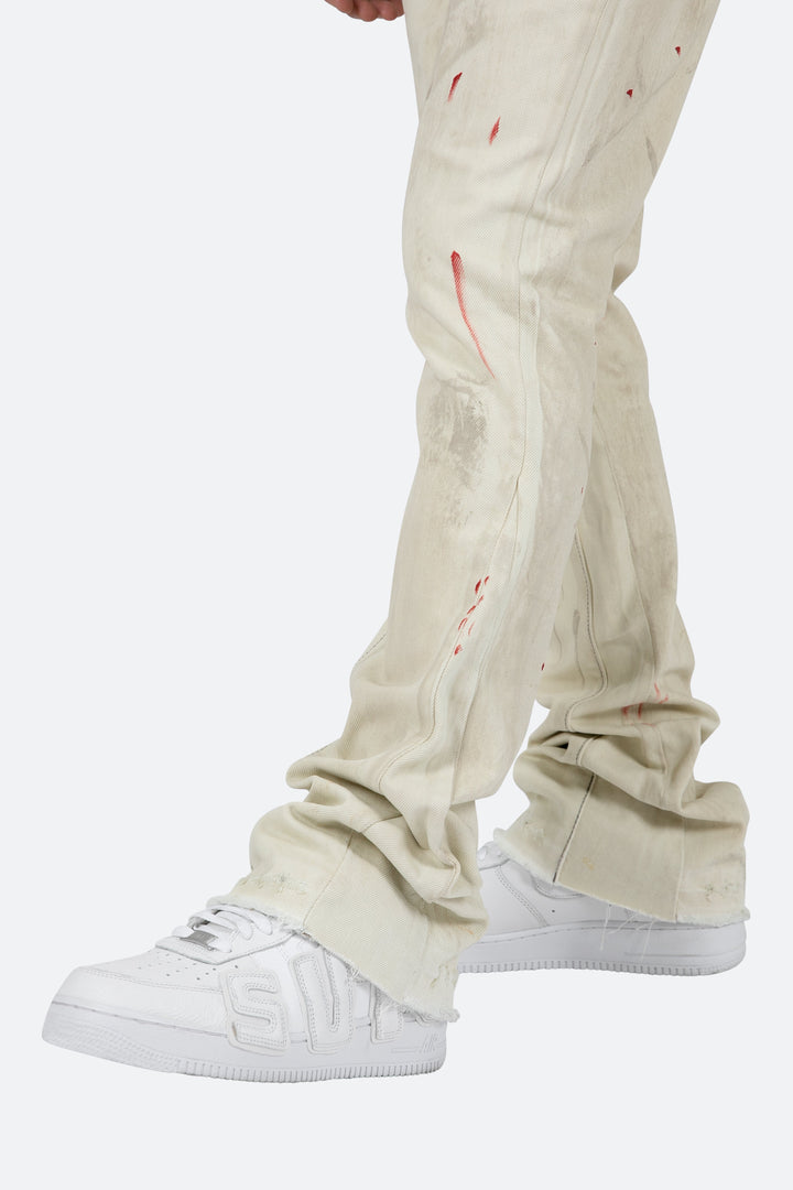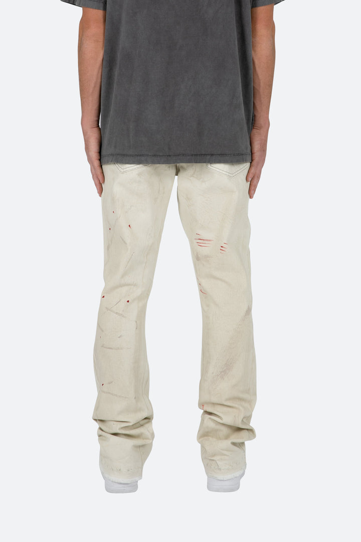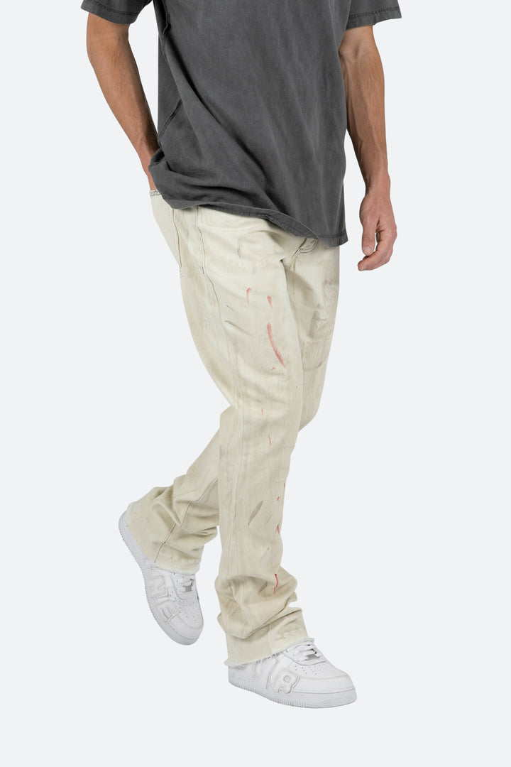 the B410 Flare Denim are designed with our new B fit, which is slim through the thigh and features a slight flare at the leg opening and is constructed from natural colored denim, panelling at the inseam and outseam from self fabric for a slight flare and finished with a deconstructed hem.