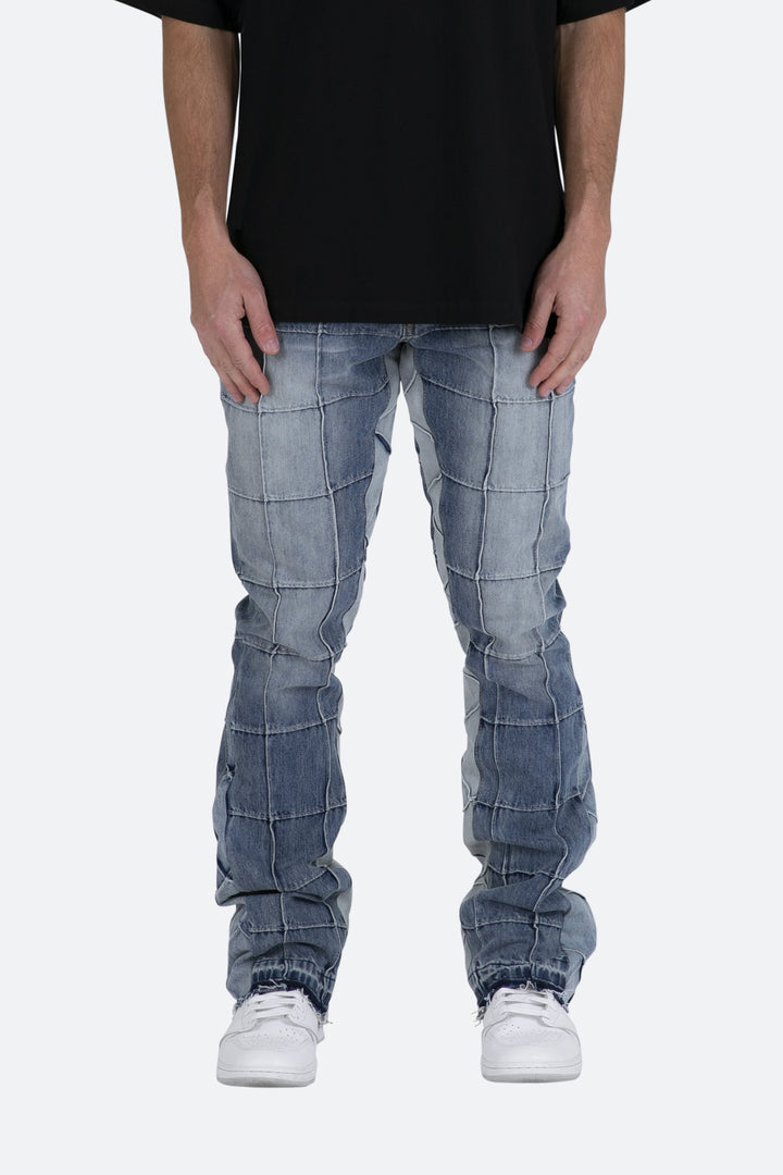 the B420 Paneled Flare Denim are designed with our new B fit, which is slim through the thigh and features a slight flare at the leg opening and is constructed from washed blue denim, square panelling throughout, panelling at the inseam and outseam from contrasting blue denim for a slight flare and finished with a deconstructed hem.