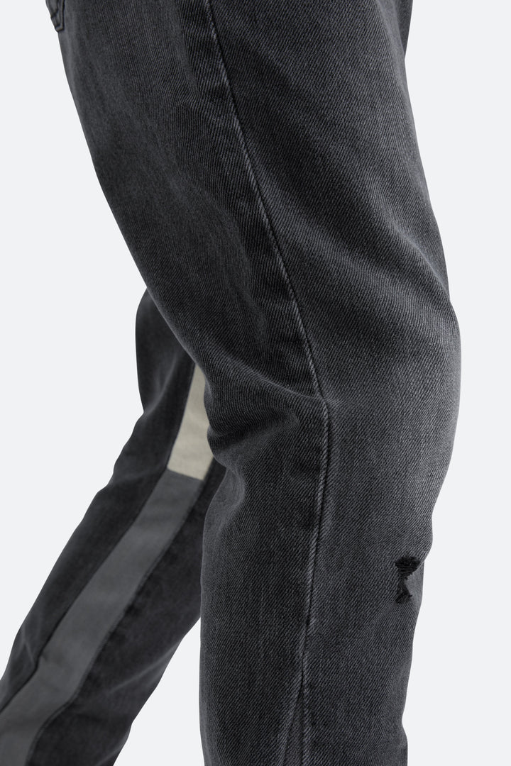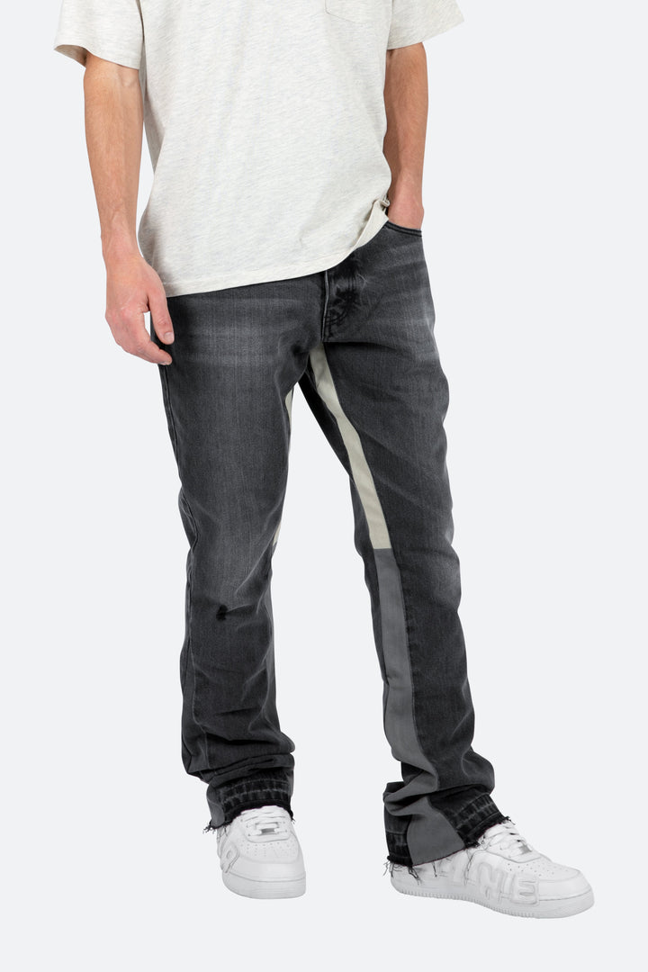 the B476 Flare Denim are designed with our new B fit, which is slim through the thigh and features a slight flare at the leg opening and is constructed from washed black denim, contrast panelling at the inseam and outseam from contrasting denim for a slight flare and finished with a deconstructed hem.