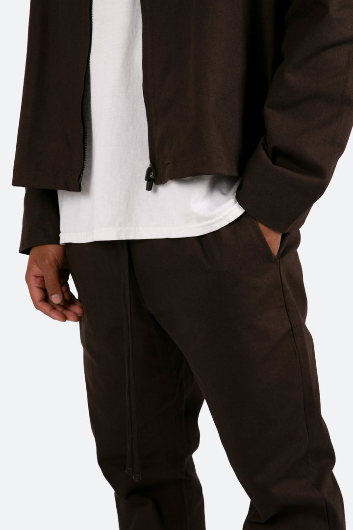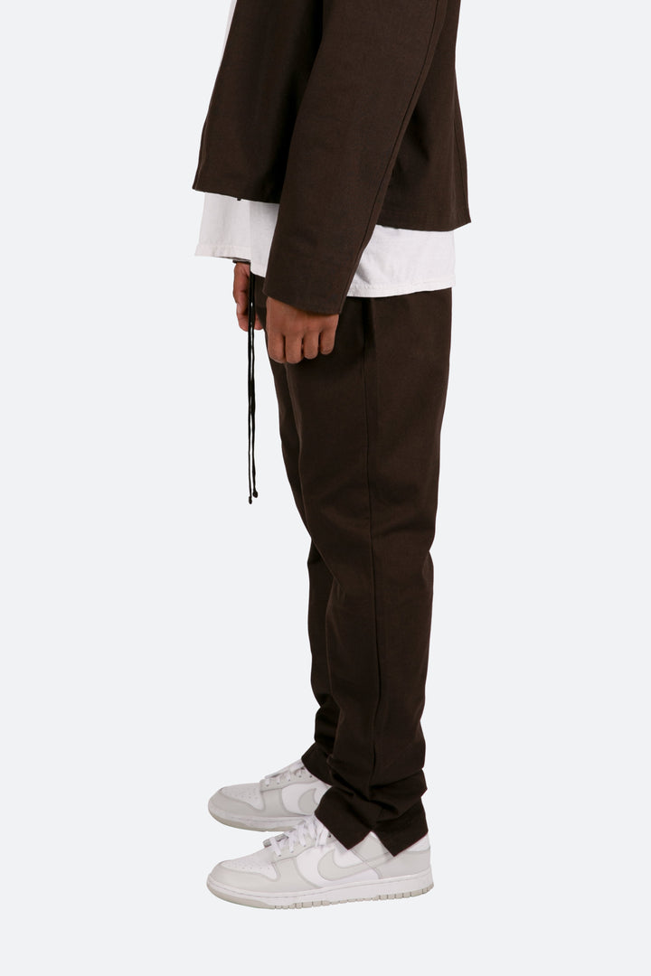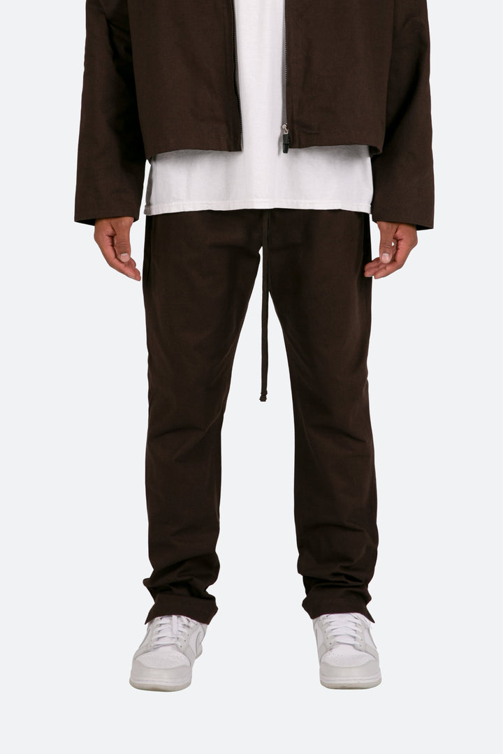 the Every Day Twill Pants are designed with a relaxed fit throughout, featuring an elastic waistband, tonal cotton drawcord, welt pockets at the side seam, and finished in a washed cotton twill fabric.