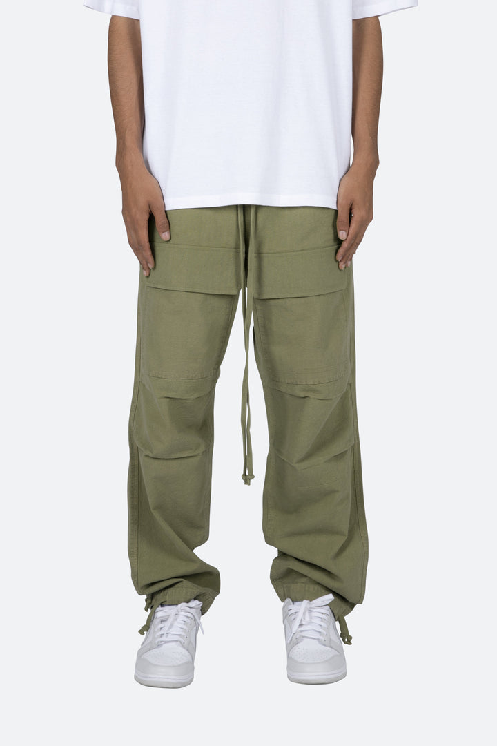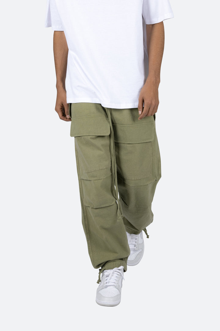the Utility Snap Cargo Pants are designed with a relaxed fit throughout the leg, with large cargo pockets located on the front, an elastic waistband, yellow elastic drawcord, zipper pockets at the side seam and finishing off with contrasting paneling on the inseam.
