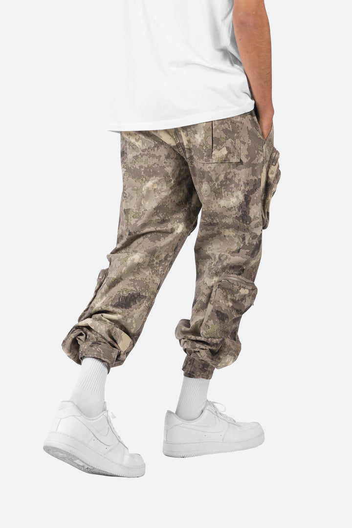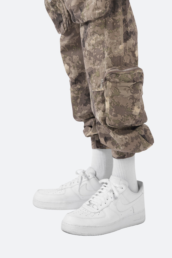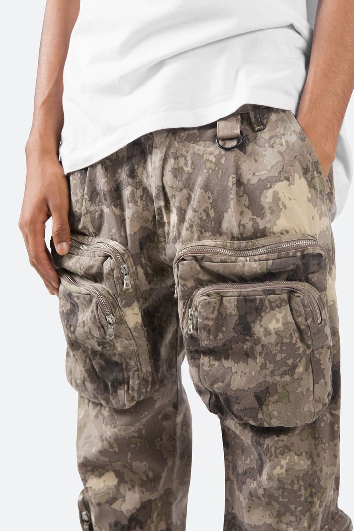the Zipper Cargo Pants are designed with a baggy fit throughout, cargo pockets at the side seam and front with zipper closures, a zipper fly, and finishing off with self-fabric closures at the ankles to control the taper.