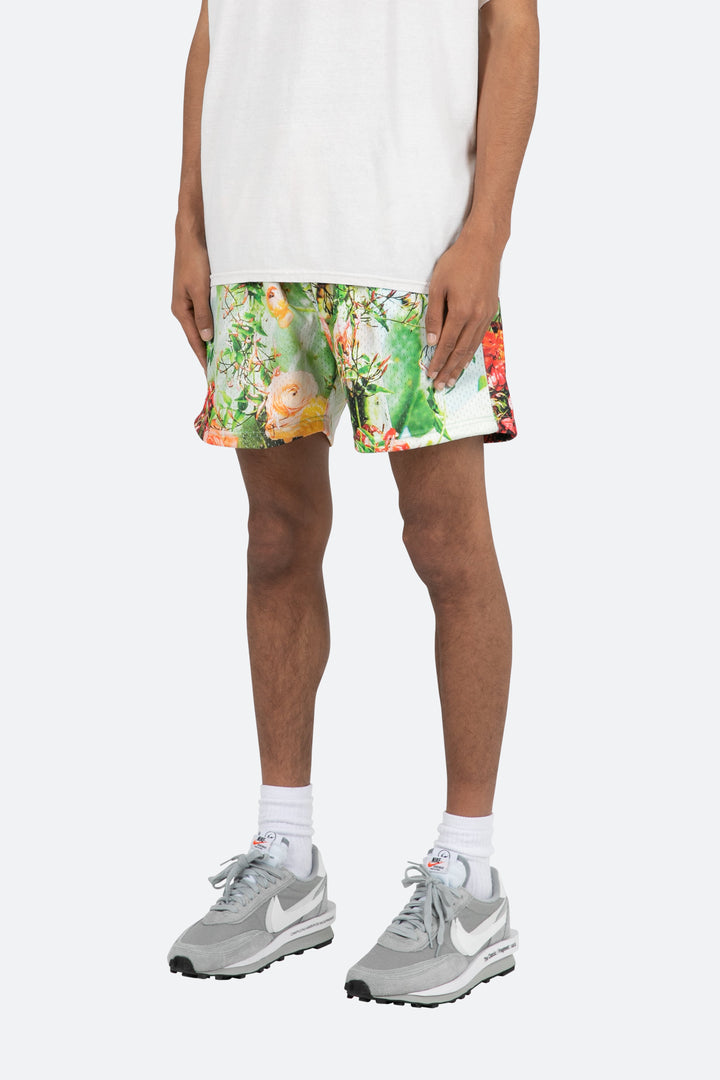 the Cactus Mesh Shorts are constructed with a custom-knit mesh fabric in a relaxed fit. The short feature an elasticized waist in self fabric, welt pockets at the outseam, all over printed cactus pattern, and a natural cotton drawstring.