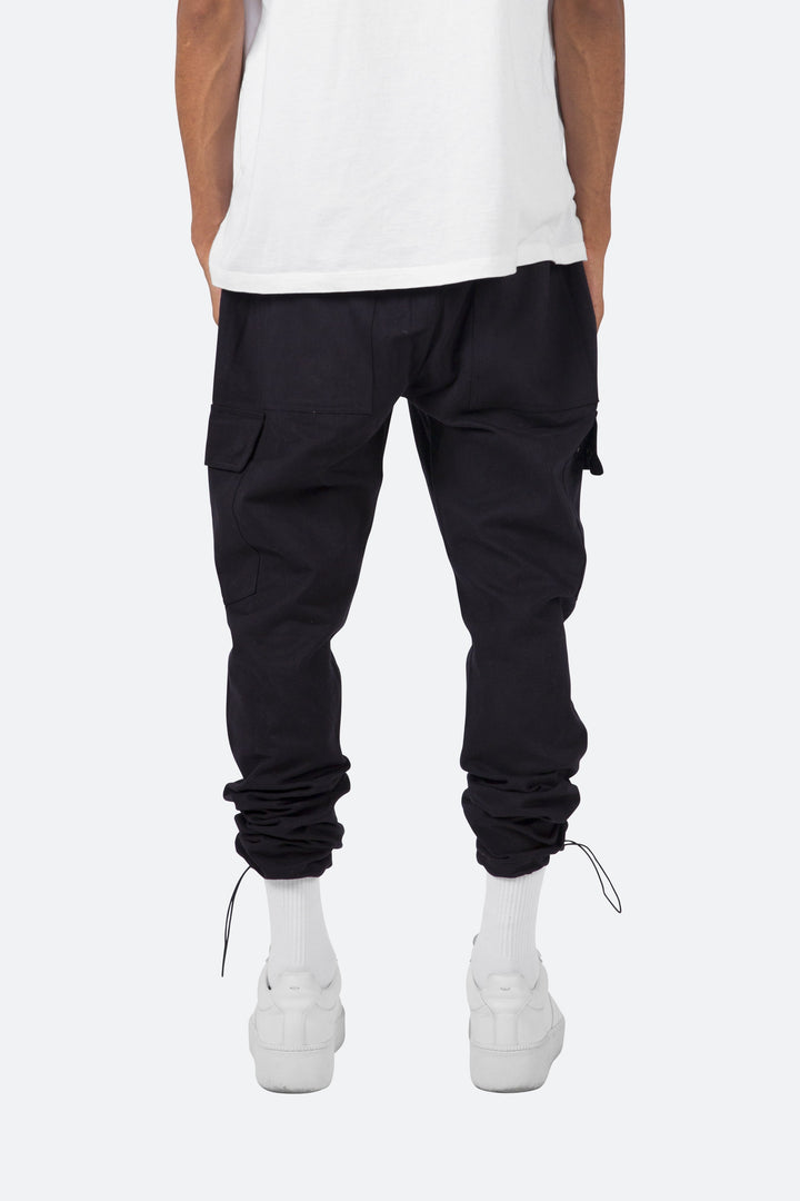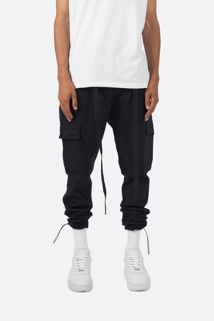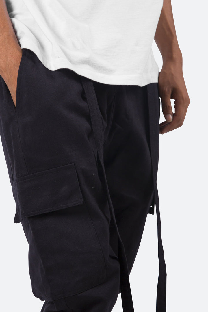 the Cargo Lounge Pants are designed with a baggy, relaxed fit throughout, featuring an elastic waistband, built in belt constructed of self-fabric, cargo pockets at side seam, and finished with elastic cord locks at the leg opening.