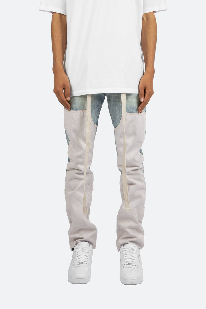 the D187 Western Denim is designed with our new short-inseam D fit which is relaxed throughout, featuring contrasting nylon western panels on the front and back, and finished with a cotton canvas belt.