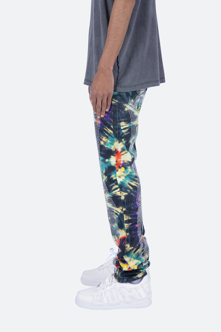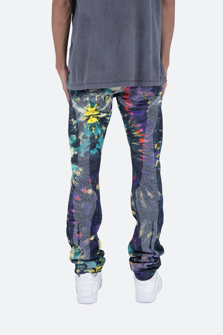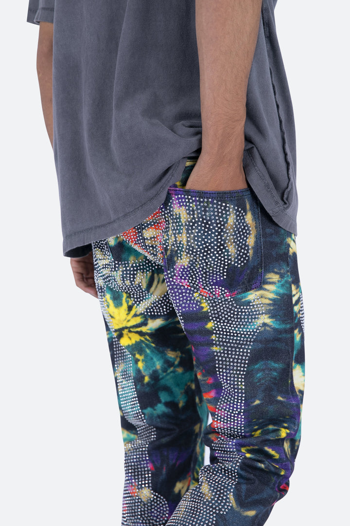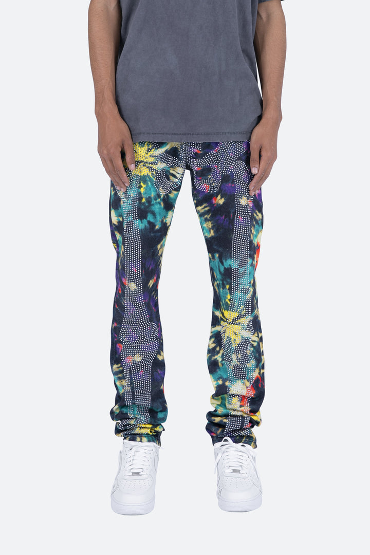 the D190 Skeleton Denim is designed with our D fit which is relaxed throughout with an extended inseam for stacking and features skeleton artwork in rhinestones and is constructed from tie-dyed denim.
