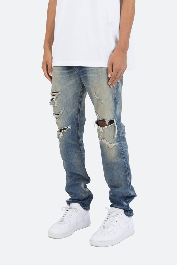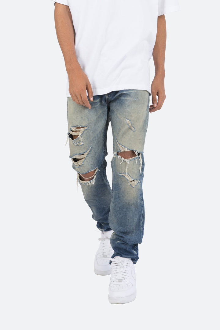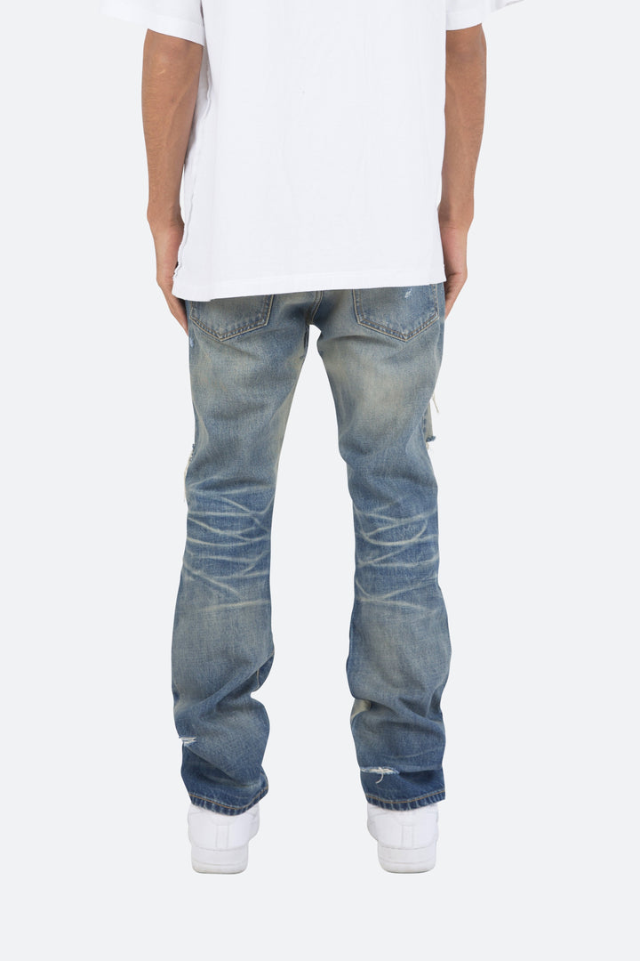 the D218 Denim is designed with our new D fit which is relaxed throughout with an extended inseam for stacking and features a medium vintage wash with distressing throughout.