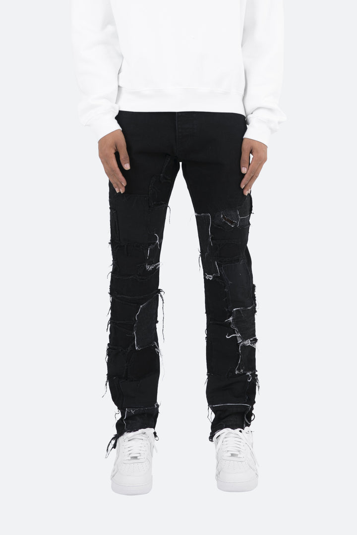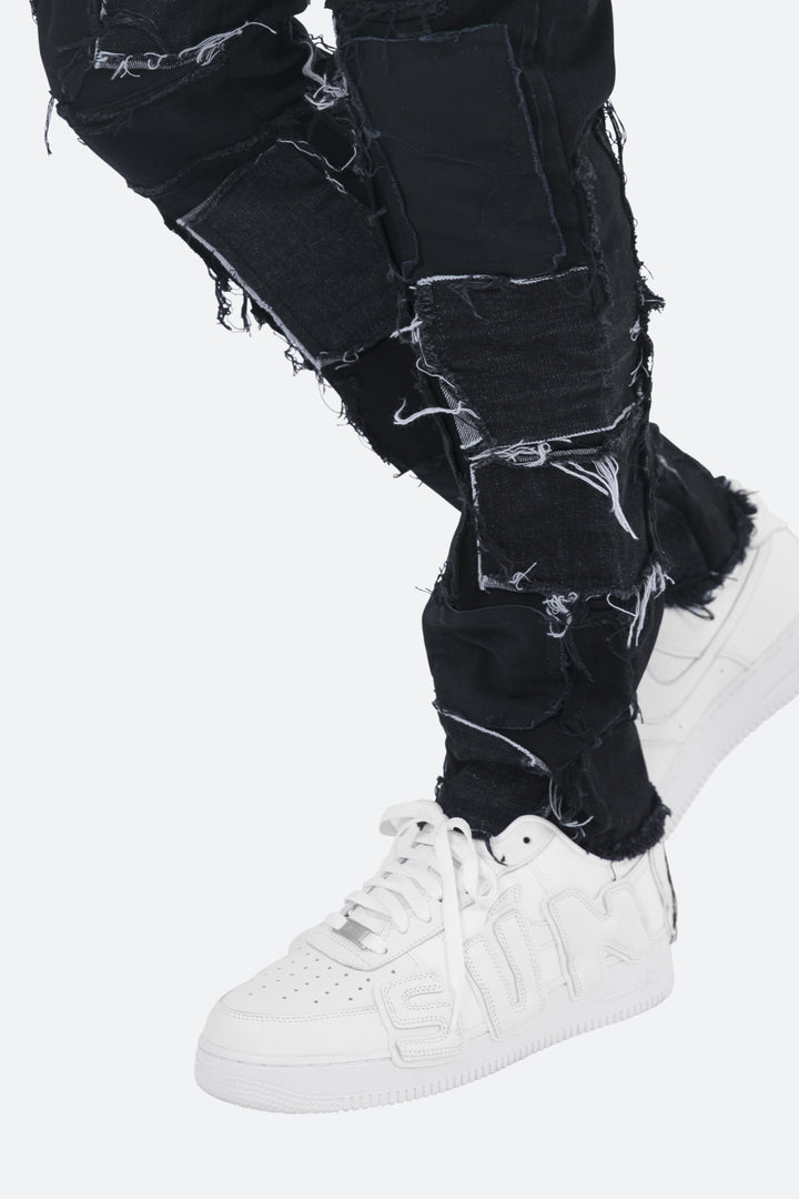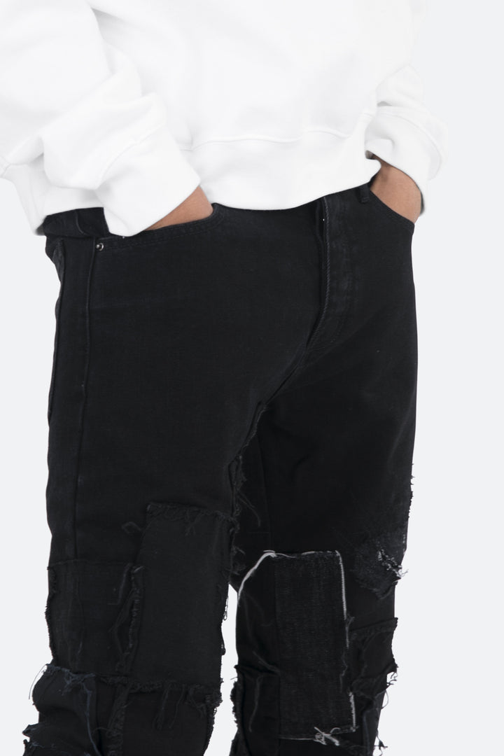 the D269 Denim is designed with our D fit which is relaxed throughout with an extended inseam for stacking and features raw edge repair panels throughout.