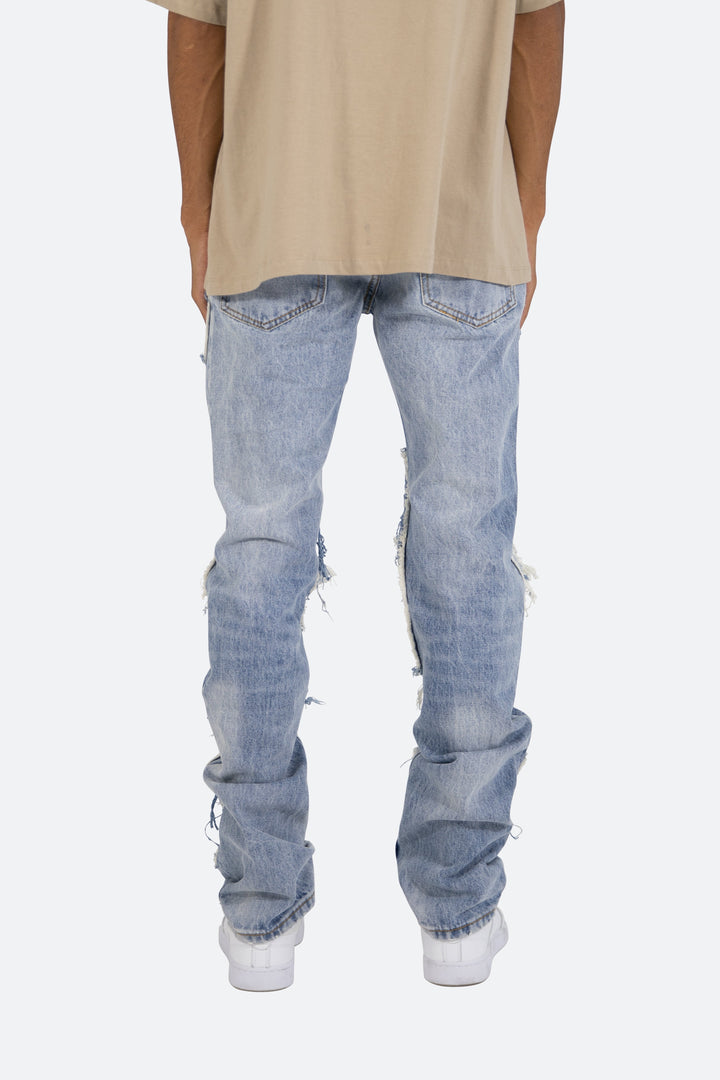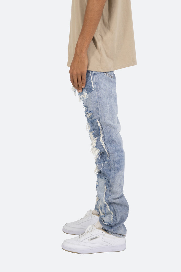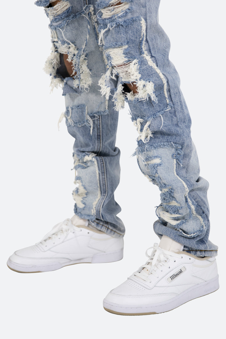 the D295 Denim is designed with our D fit which is relaxed throughout with an extended inseam for stacking and features heavy distressing throughout with tonal denim patches that are both forward and reverse facing..