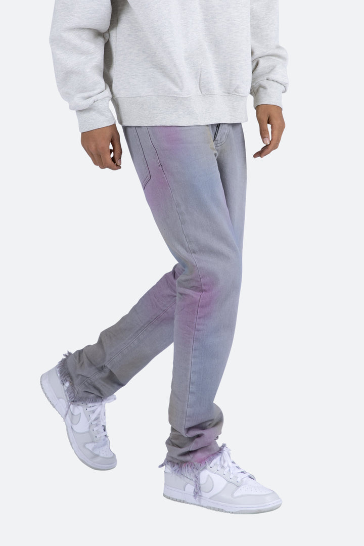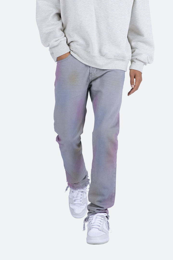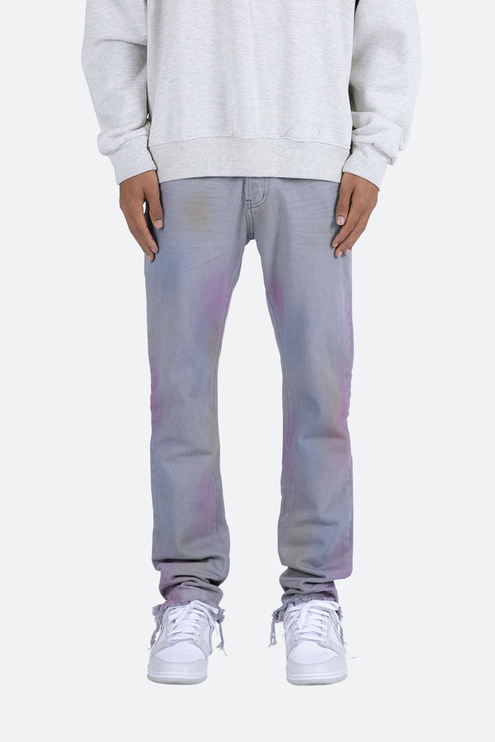 the D444 Color Denim is designed with our new D fit which is relaxed throughout with an extended inseam for stacking and features a light wash, and finished with multi color paint detail throughout.