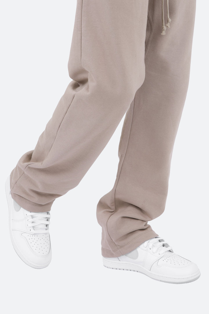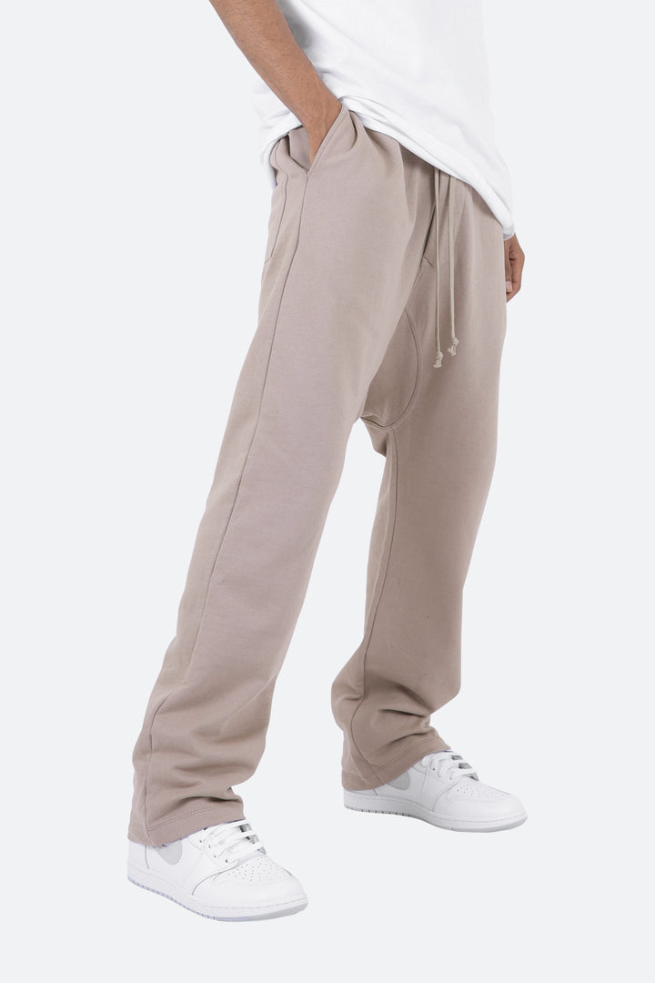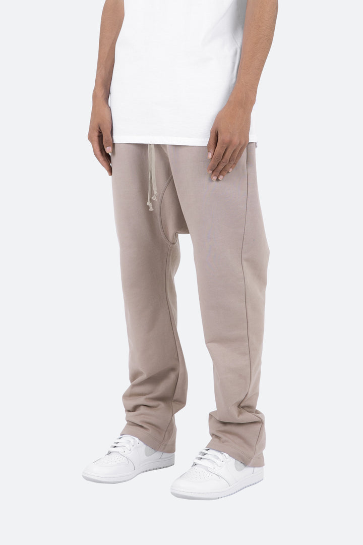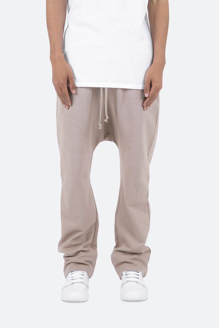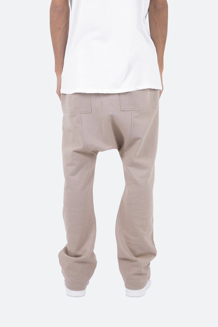 the Drop Crotch Sweatpants are designed with a relaxed fit throughout with a drop crotch, featuring an elasticized self waist with tonal cotton drawstrings, and finished with standard leg opening with no cinching.
