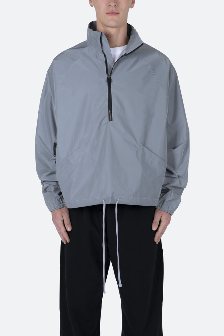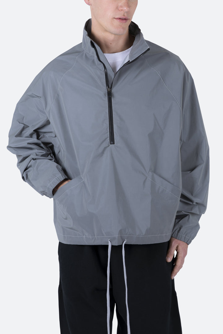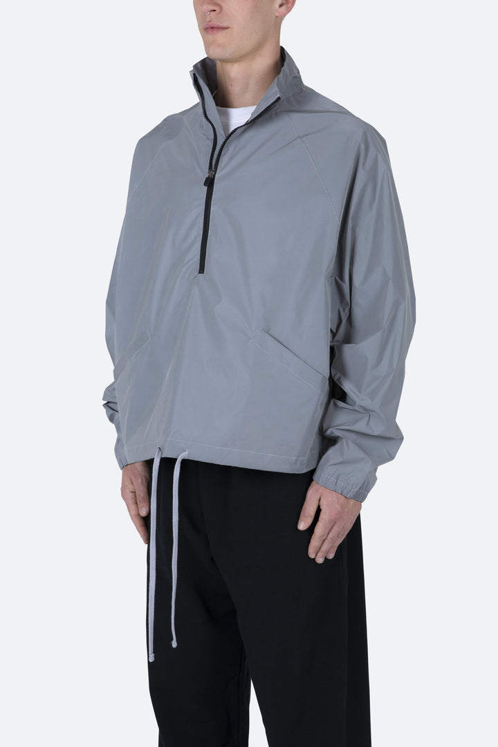 the Every Day Half Zip Jacket is designed with a relaxed fit and features a half zip placket at the chest, elasticized cinch at the sleeve, drawcord at the waist, and finished in a reflective .