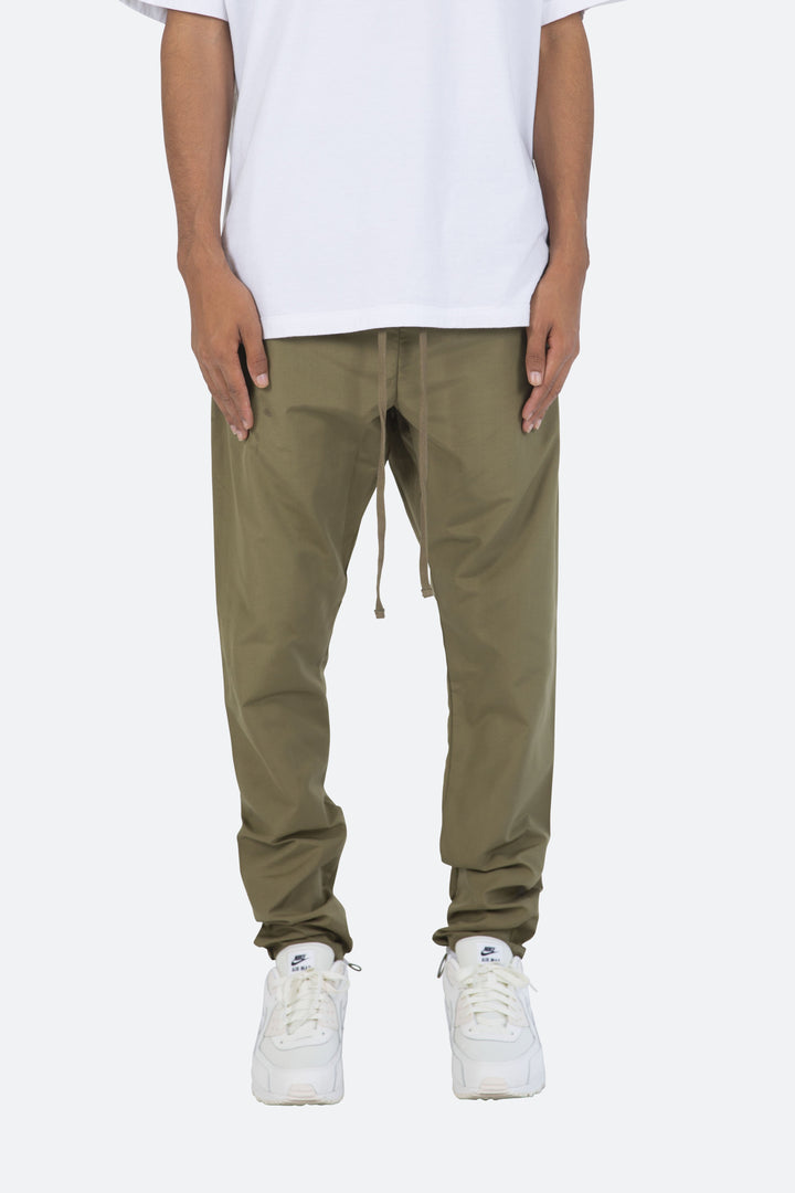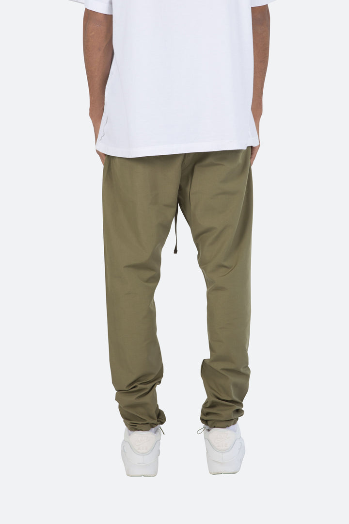 the Every Day Nylon Pants are designed with a relaxed fit throughout, featuring an elastic waistband, tonal cotton drawcord, welt pockets at the side seam, and finished with clear elastic cord locks at the leg opening.