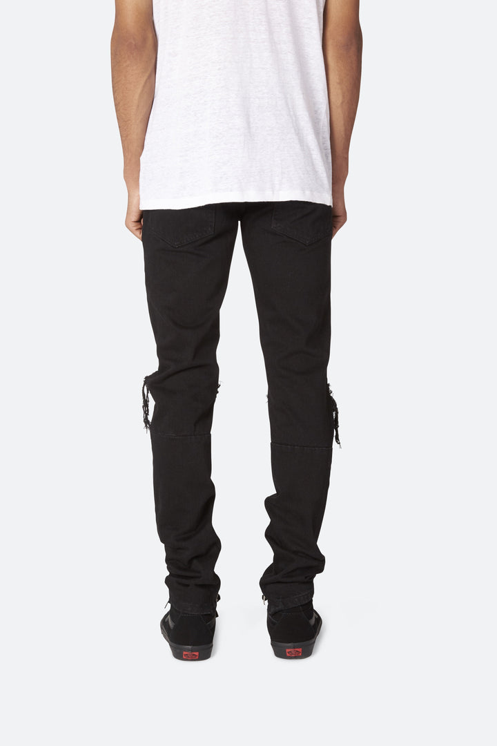 Developed in Los Angeles, the Black M1 Denim is designed with a relaxed fit through the thigh that tapers from the knee to the ankle, featuring distress details at the knees and finishing off with a 10″ concealed zipper on the inseam for a carefully optimized fit.