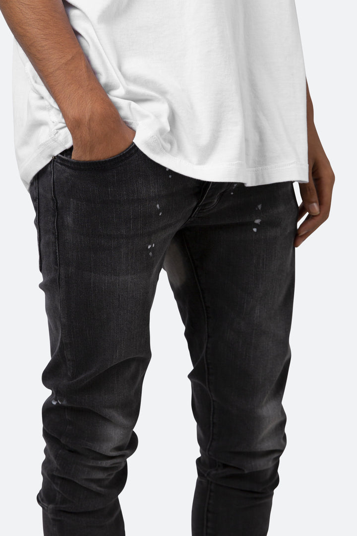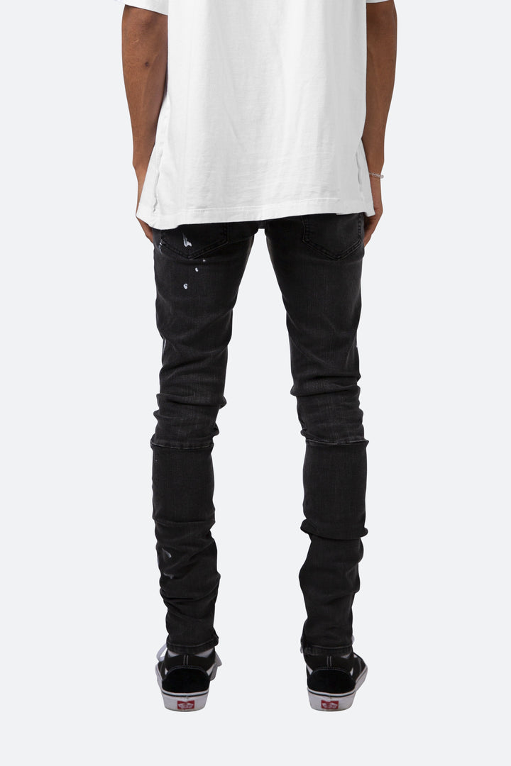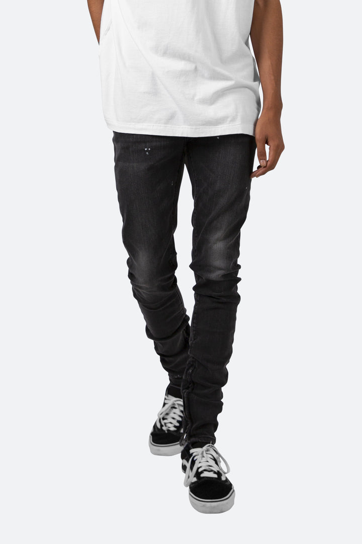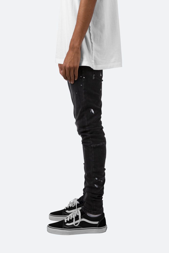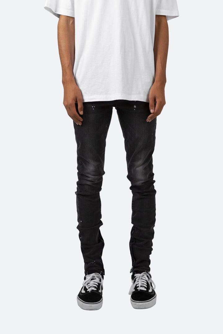the M170 Stretch Denim is designed with a relaxed fit through the thigh that tapers from the knee to the ankle, featuring a vintage black wash, light paint splattering throughout, and finished off with a 10″ concealed zipper on the inseam for a carefully optimized fit.