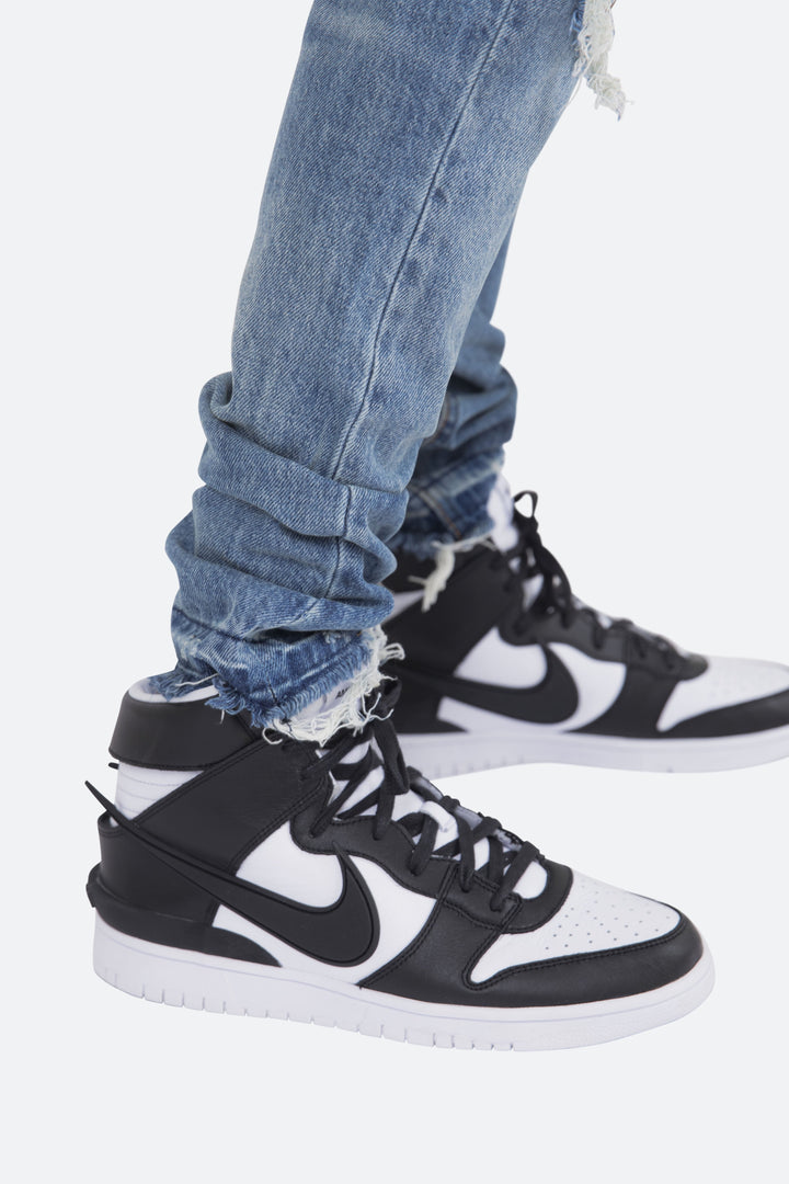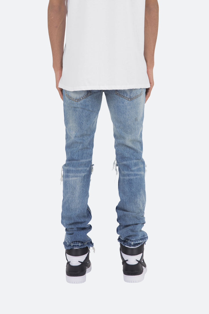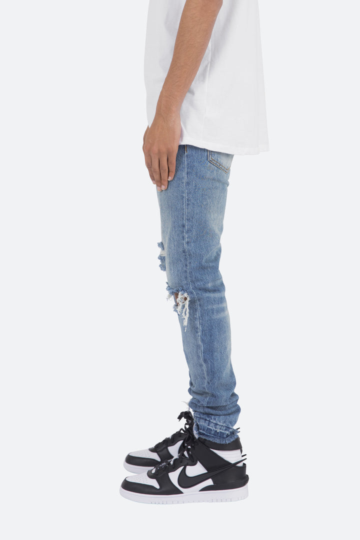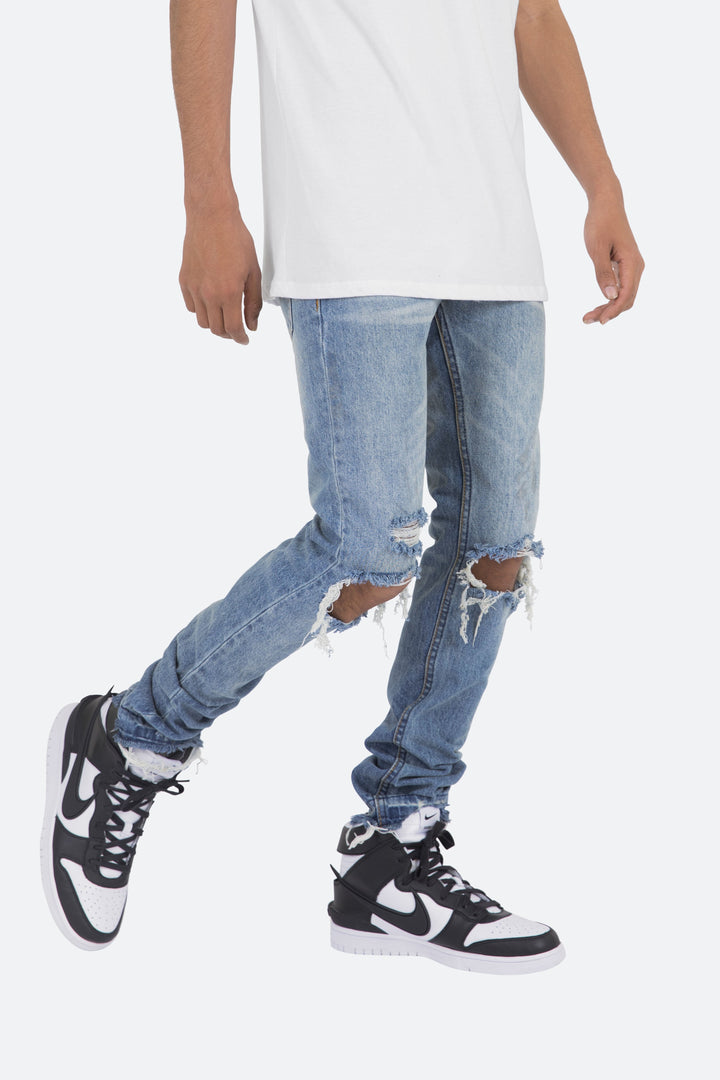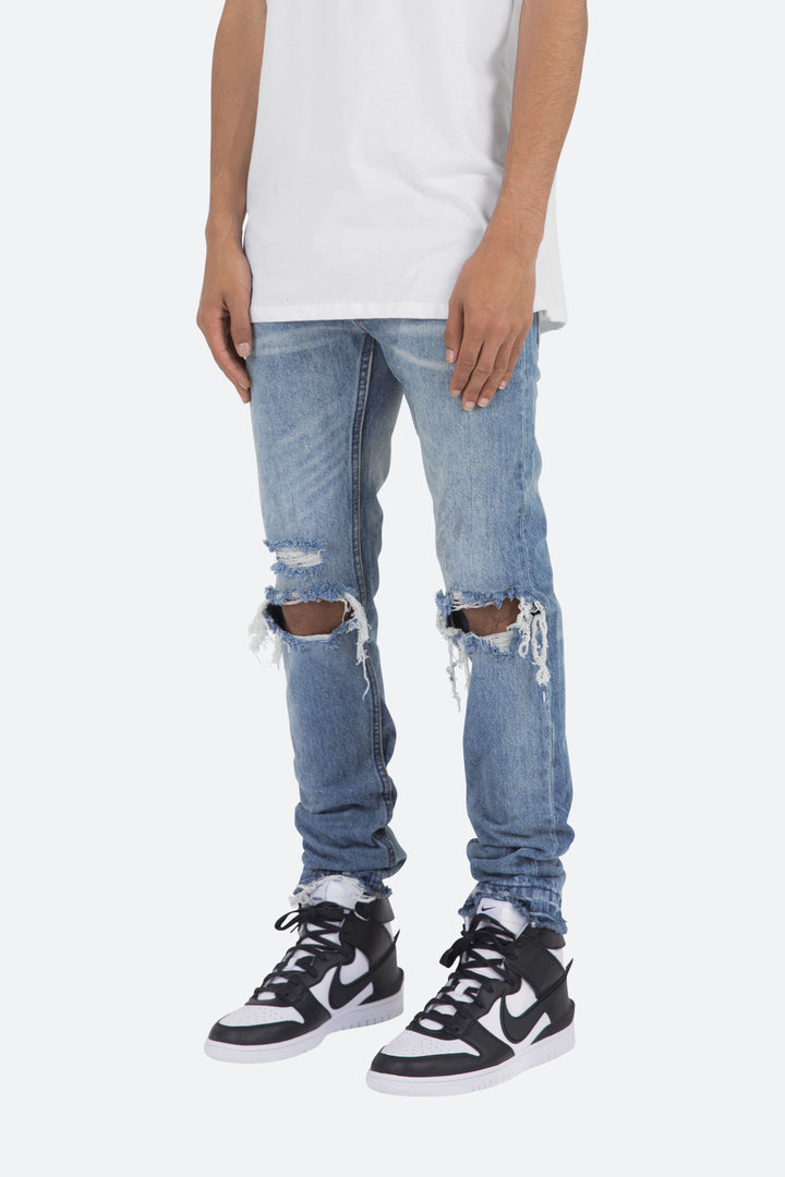 the M345 Denim is part of our new M300 line of zipperless M Denim. The M345 Denim features a relaxed fit through the thigh that tapers from the knee to the ankle, distressed details at the knees and finishes off with a traditional zipperless inseam.