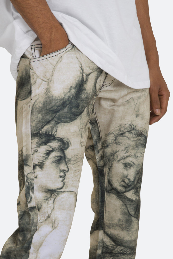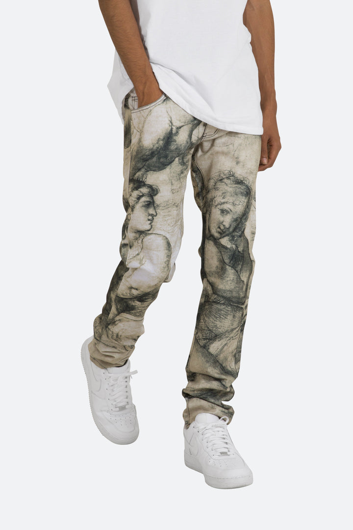 the M351 Art Denim is part of our new M300 line of zipperless M Denim. The M351 Art Denim features a relaxed fit through the thigh that tapers from the knee to the ankle, all-over sublimated artwork and finishes off with a traditional zipperless inseam.