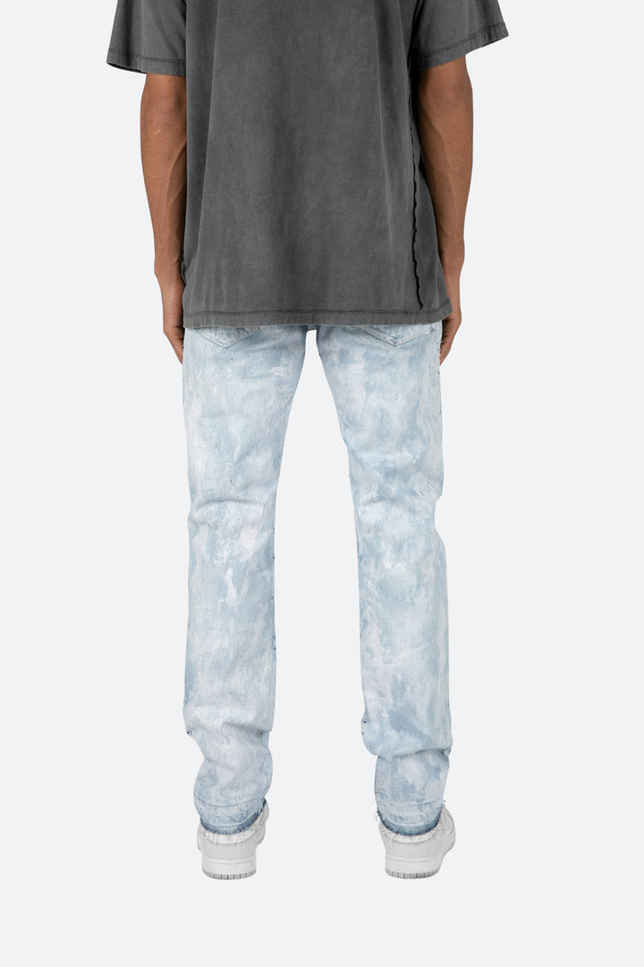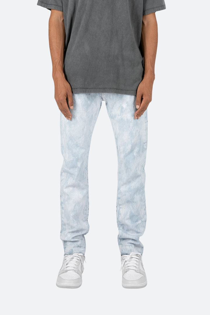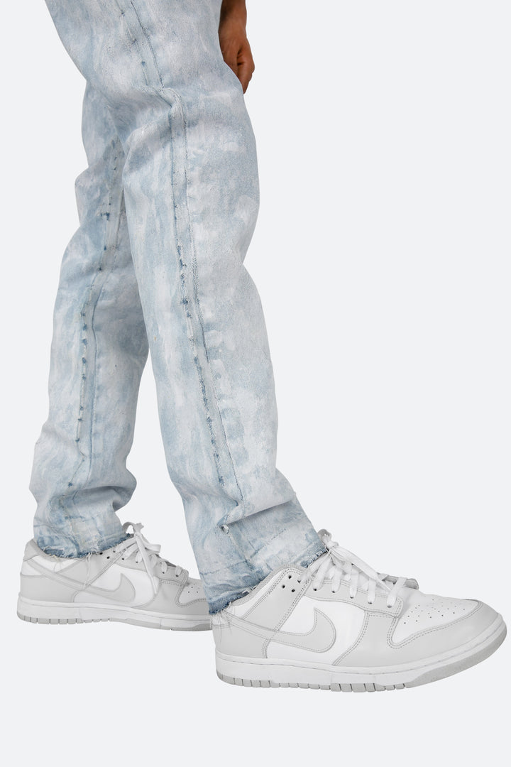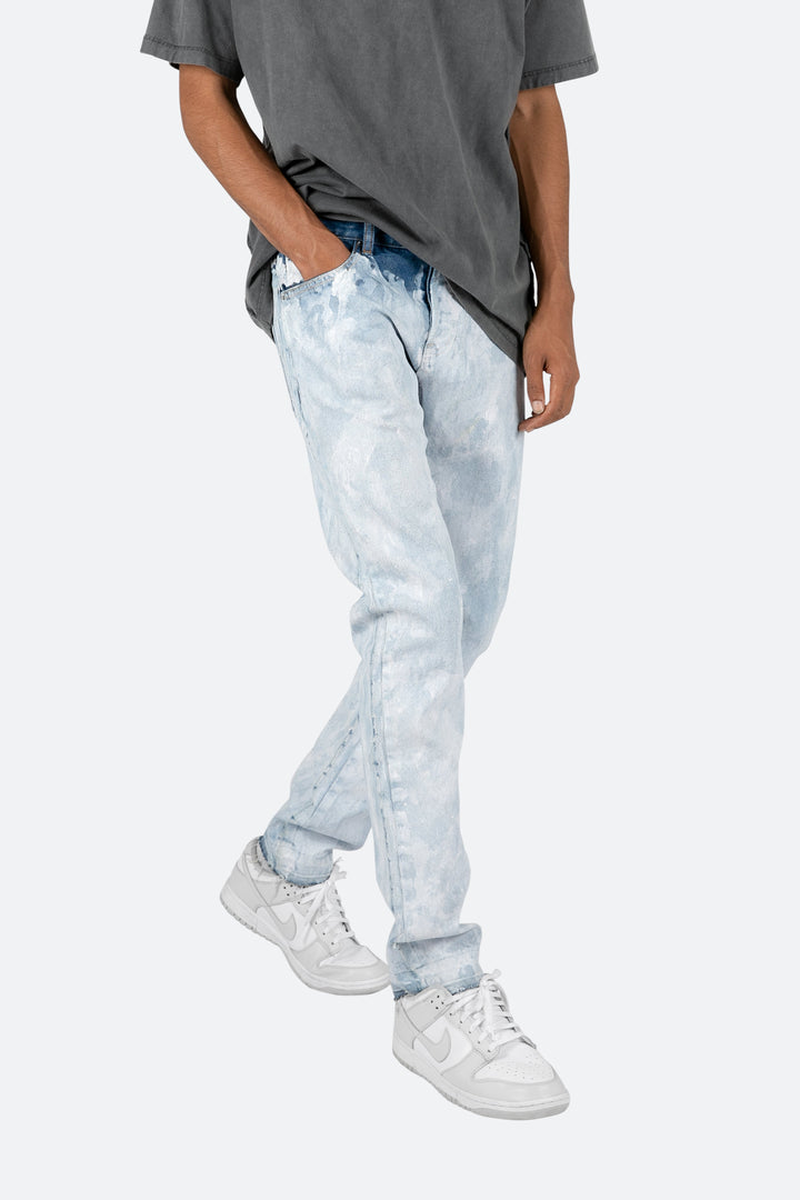 the M358 Painted Denim is part of our M300 line of zipperless M Denim. The M358 Painted Denim features a relaxed fit through the thigh that tapers from the knee to the ankle, constructed from a dark wash denim, covered in white paint detailing, and finishes off with a traditional zipperless inseam.