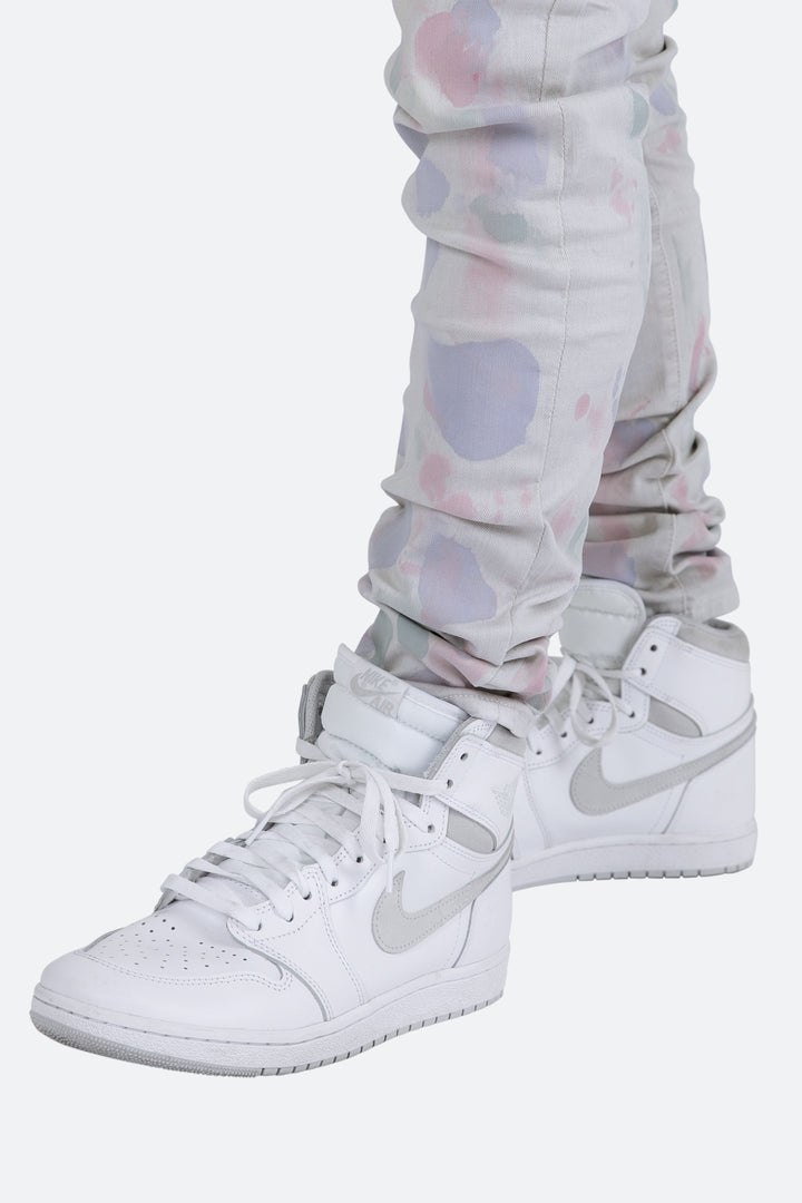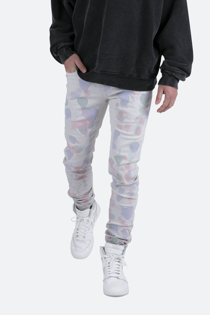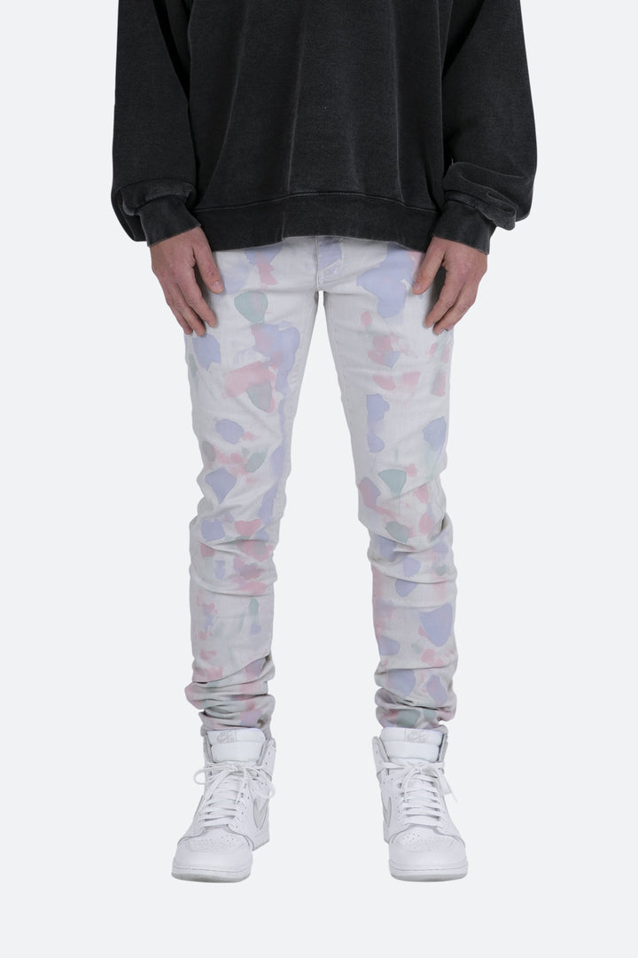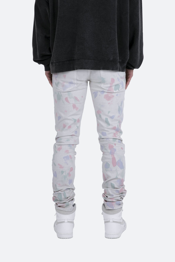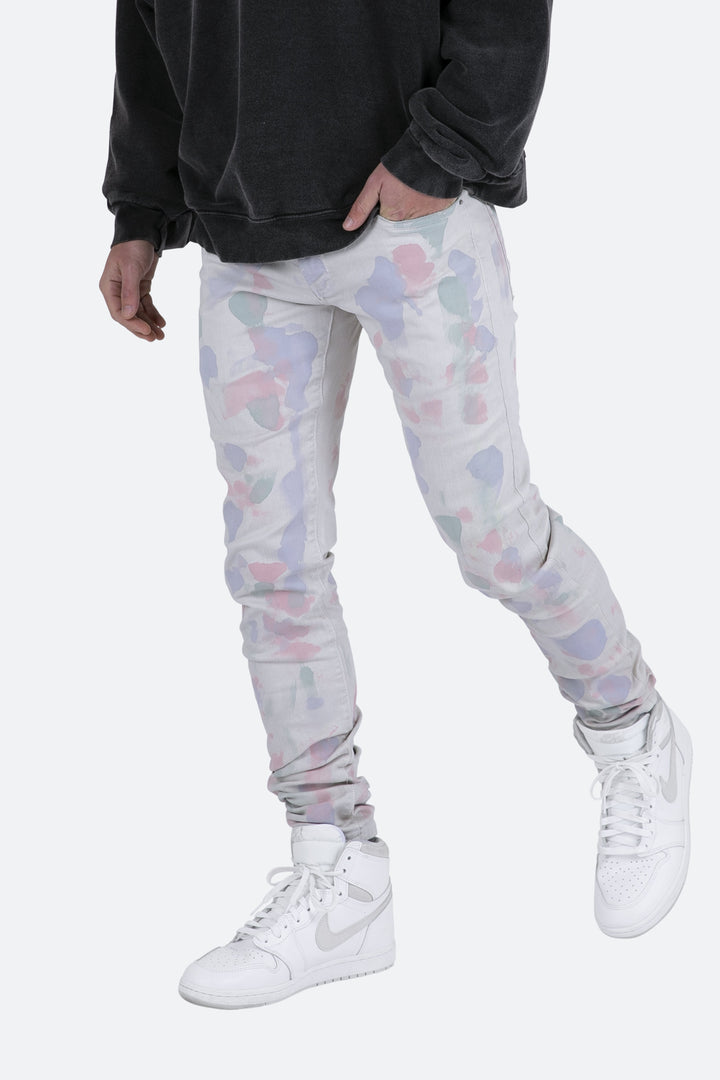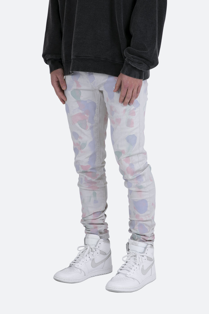 the M363 Painted Denim is part of our new M300 line of zipperless M Denim. The M363 Painted Denim features a relaxed fit through the thigh that tapers from the knee to the ankle, constructed from off white denim, pastel paint details throughout and finishes off with a traditional zipperless inseam.