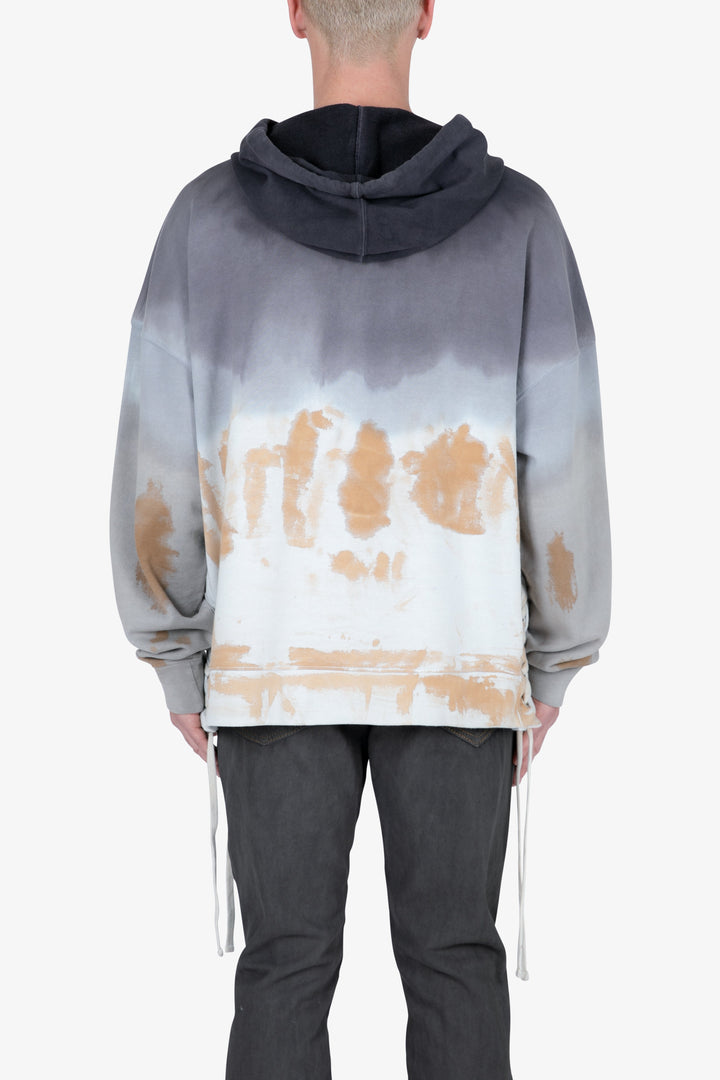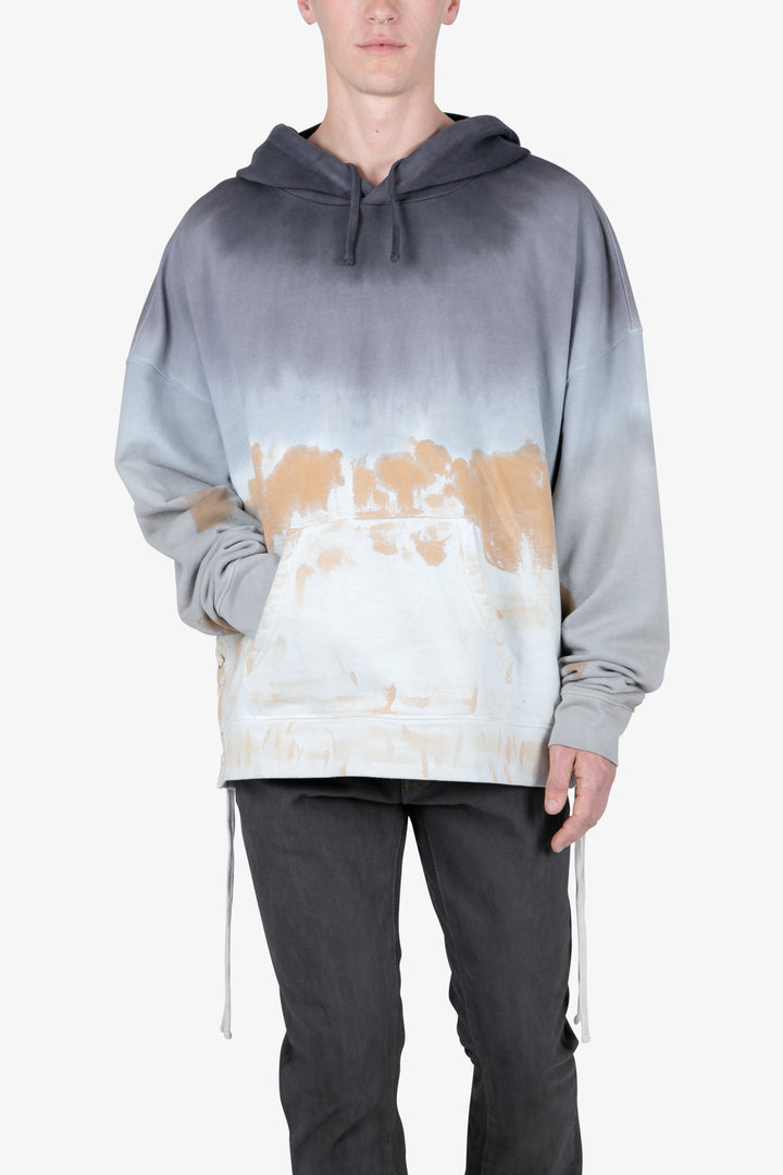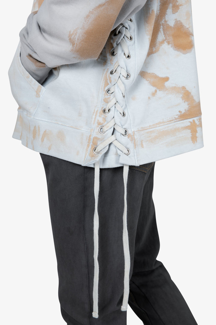 The Beach Washed Hoodie features a relaxed fit with a dropped shoulder design, front pouch pocket, ribbing at the wrists and waist, lacing at the side seams, and finished in tie-dye.