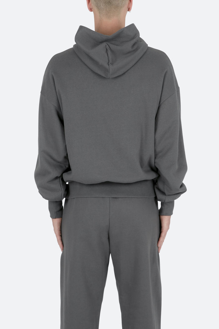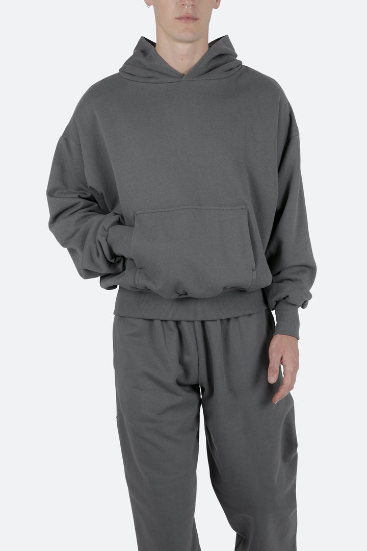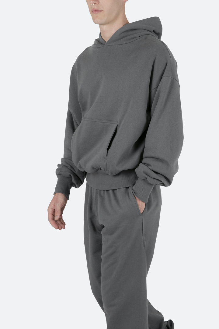 the Double Layer Hoodie features a relaxed fit with a dropped shoulder design, front pouch pocket, ribbing at the wrists and waist, and finished in both a washed and brushed double layer french terry fabric.