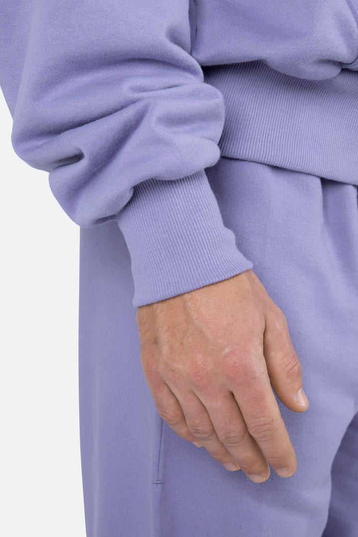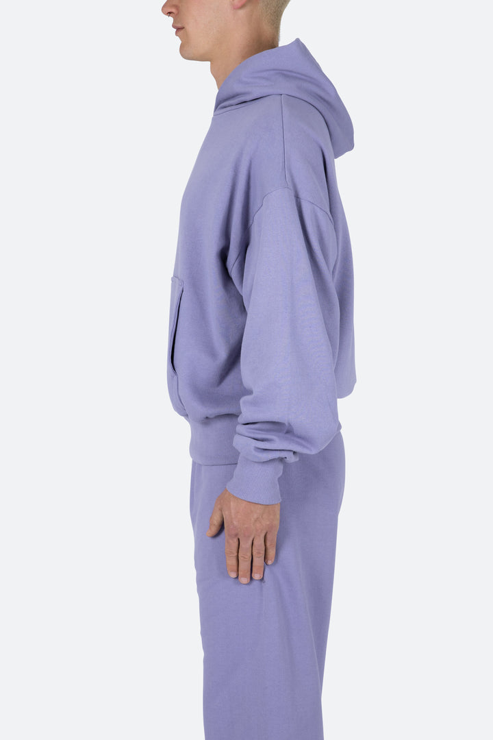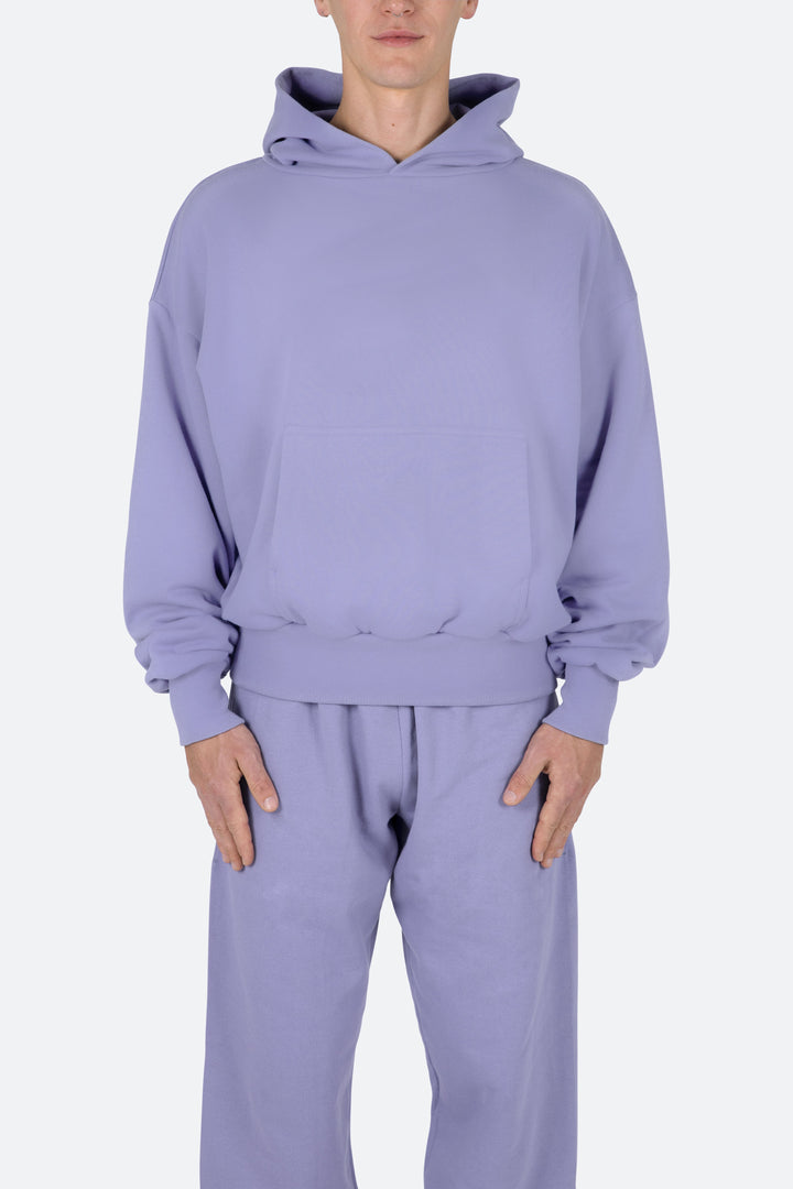 the Double Layer Hoodie features a relaxed fit with a dropped shoulder design, front pouch pocket, ribbing at the wrists and waist, and finished in both a washed and brushed double layer french terry fabric.