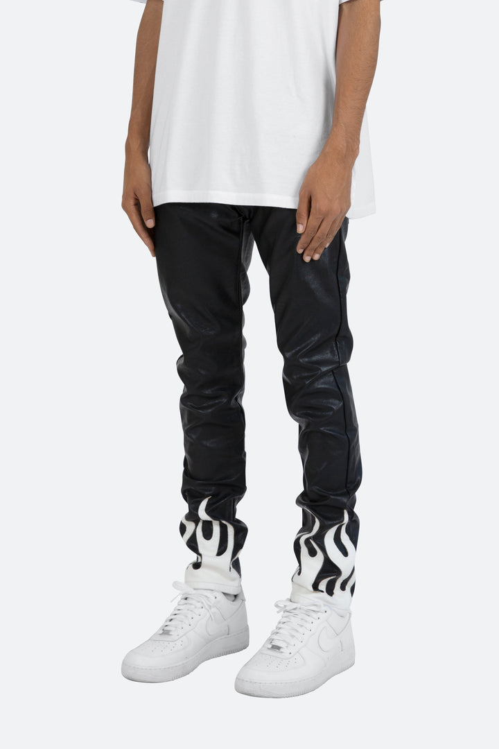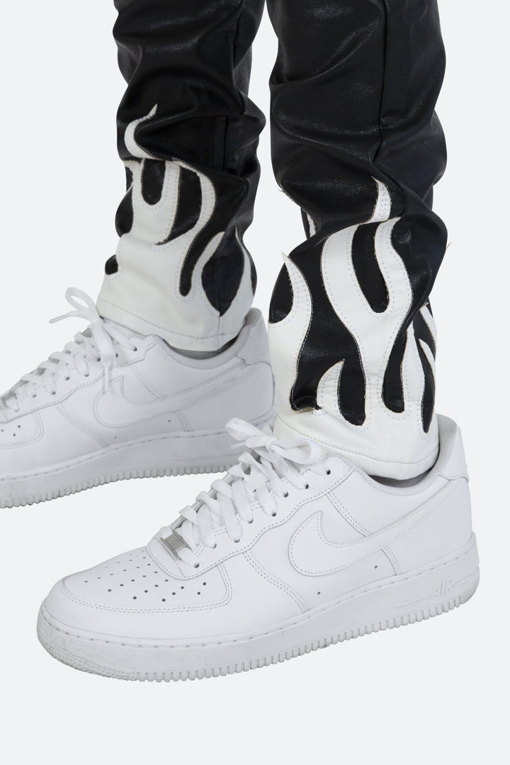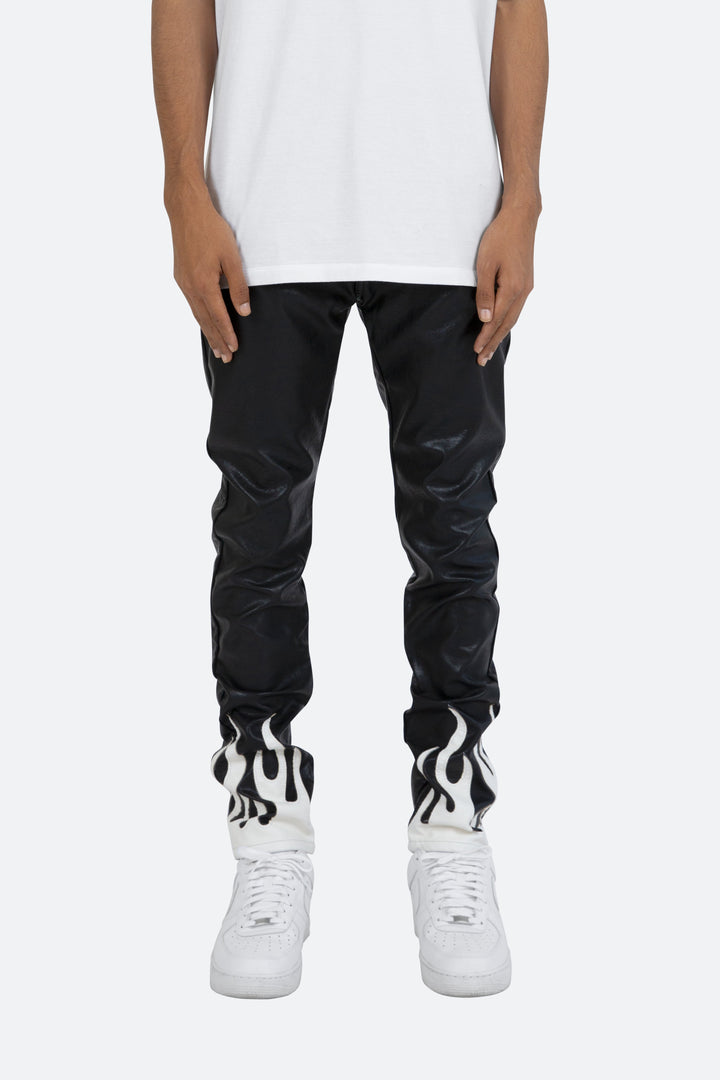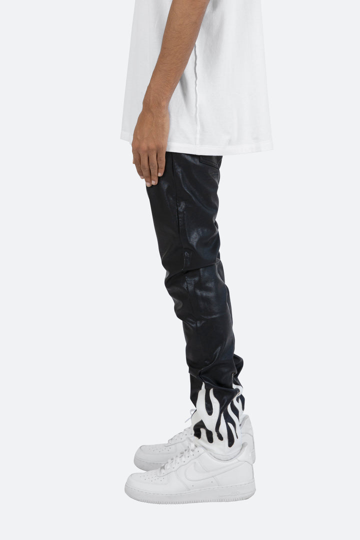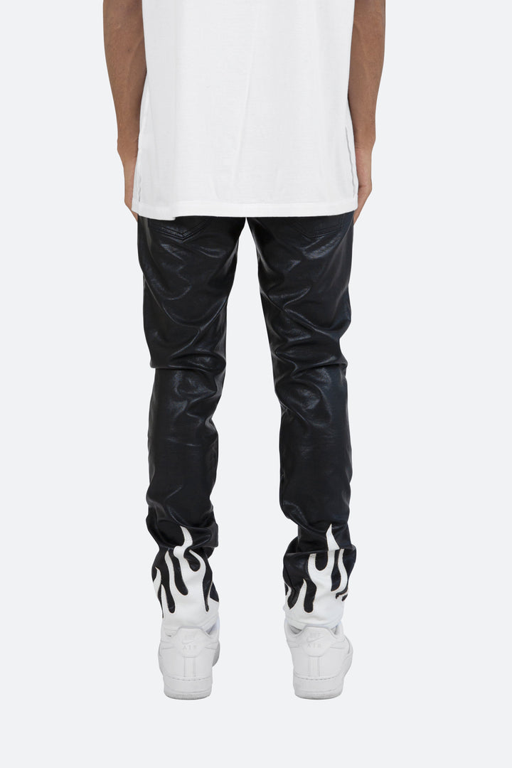 the S252 Flame Denim is designed with our new S fit, which is relaxed through the thigh and a straight leg, constructed from poly-leather, and finished with flame applique at the leg openings.