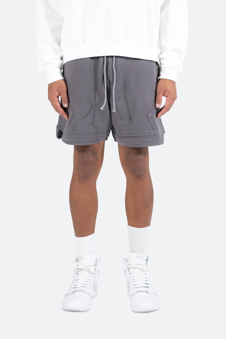the Terry Basketball Shorts are constructed from french terry fabric in a relaxed fit and feature an elasticized waist in self fabric, welt pockets, a cotton drawstring, and finished with basketball short details in self fabric.