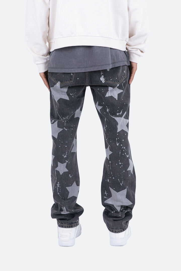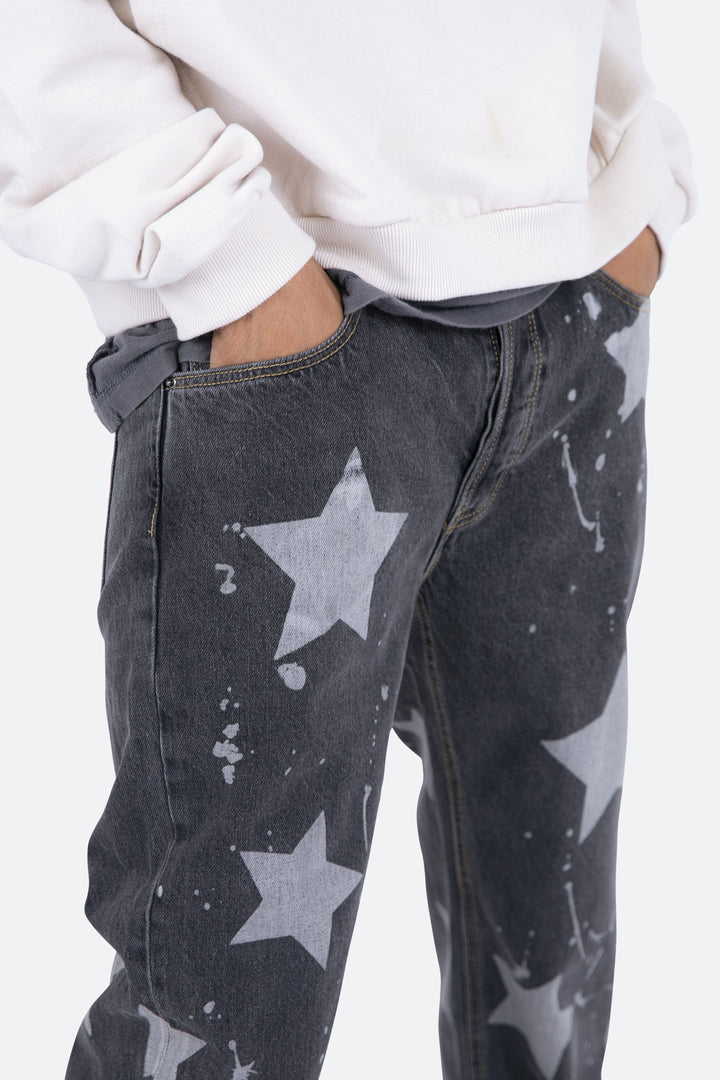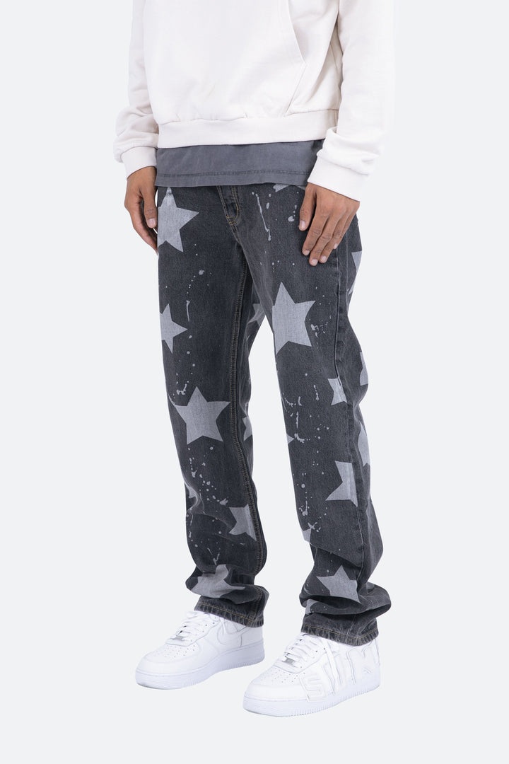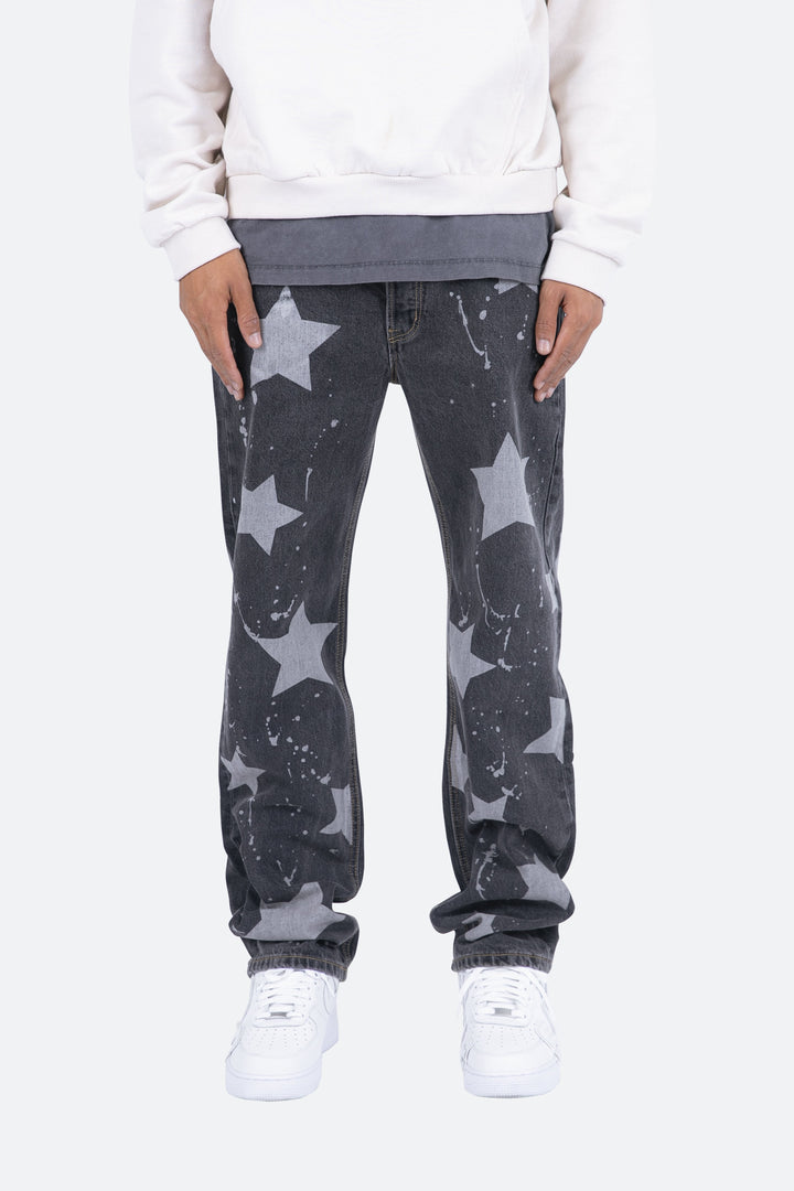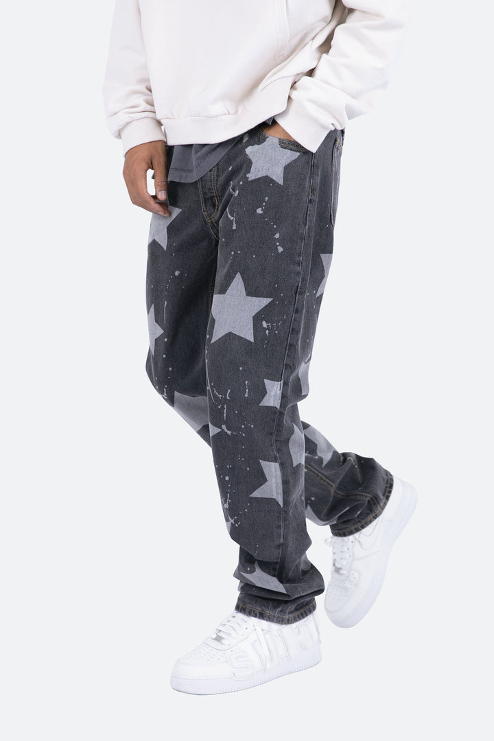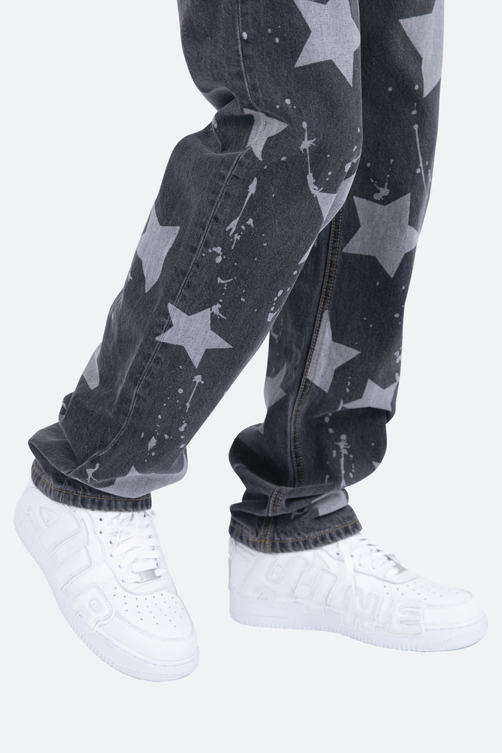 the V120 Baggy Star Denim is designed with our new V fit which is relaxed throughout and features a vintage wash and finished with bleached stars and drips throughout.