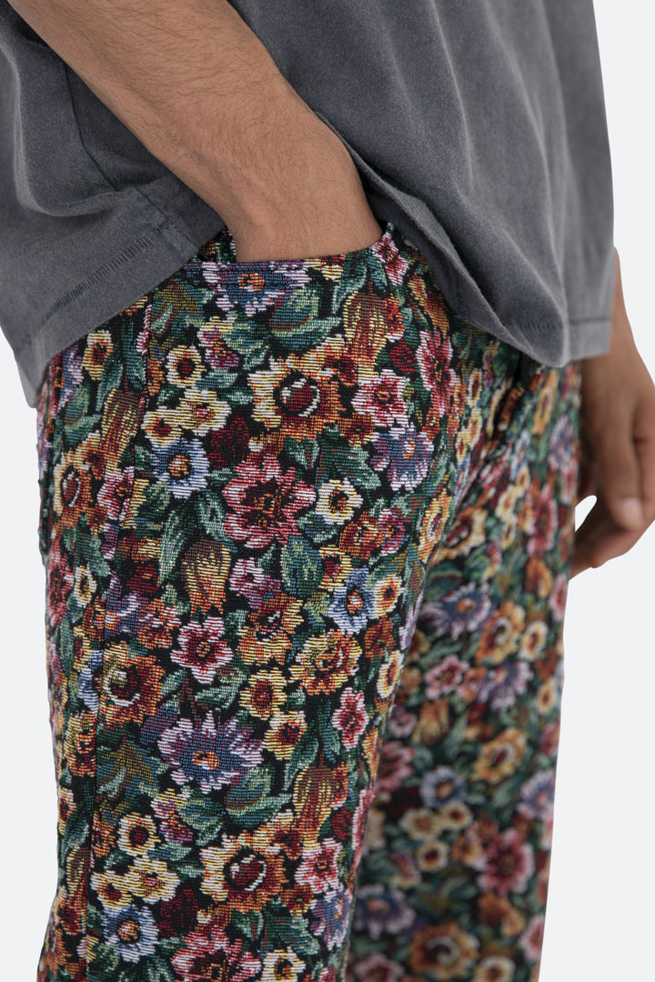the V121 Floral Baggy Denim is designed with our new V fit which is relaxed throughout, features a vintage wash and constructed from custom developed jacquard floral fabric.