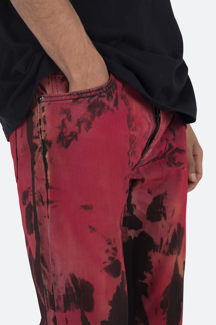 the V122 Baggy Denim is designed with our new V fit which is relaxed throughout and is constructed from black denim with a wash removing the original dye and replaced with contrasting red dye.