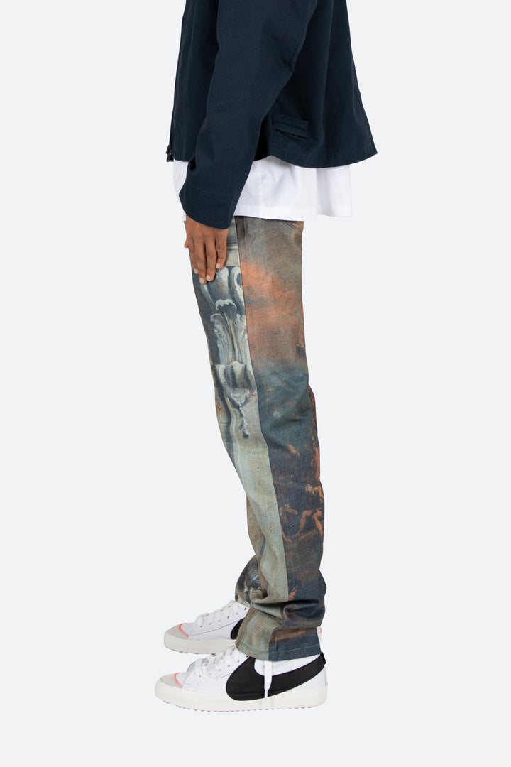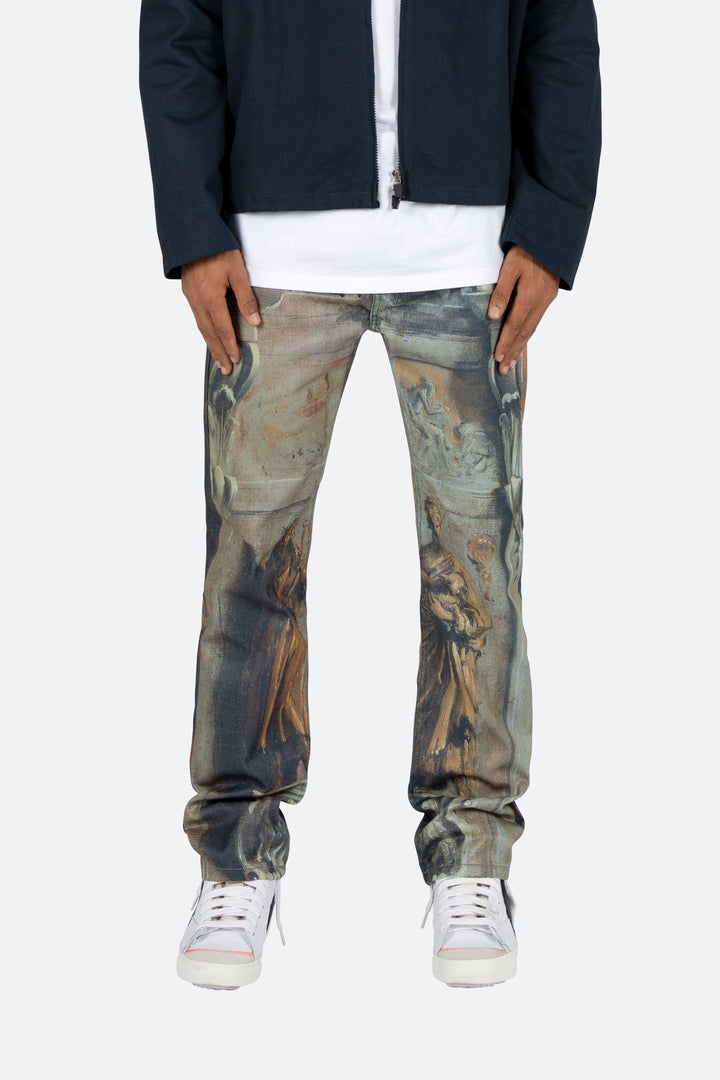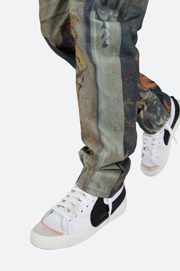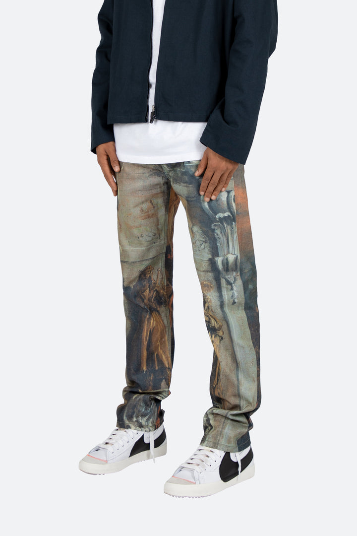 the V176 Baggy Art Denim is designed with our new V fit which is relaxed throughout, features a vintage wash and constructed from a synthetic fabric with an all over sublimated artwork.