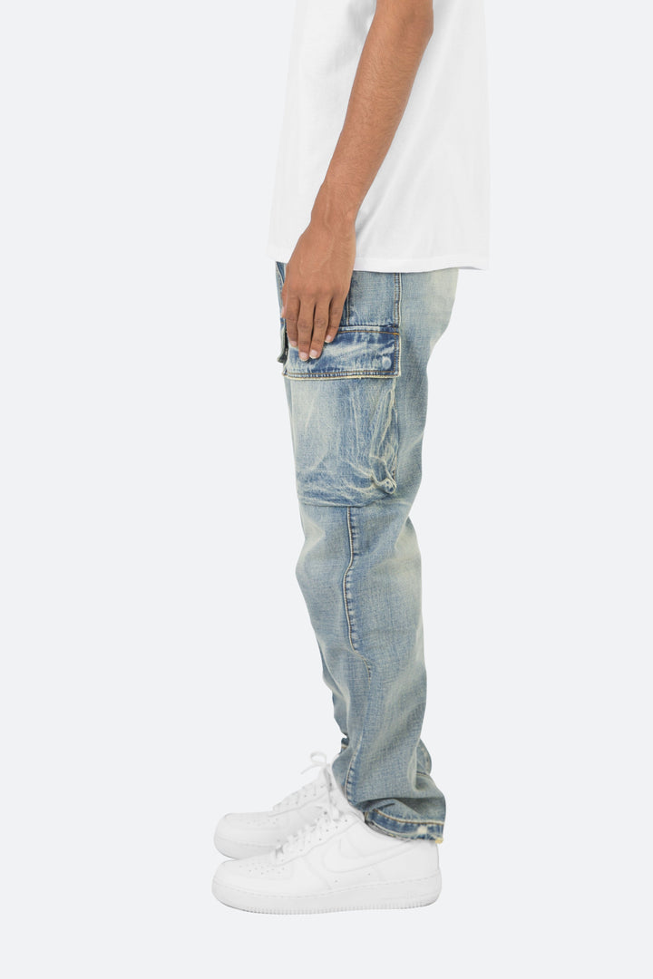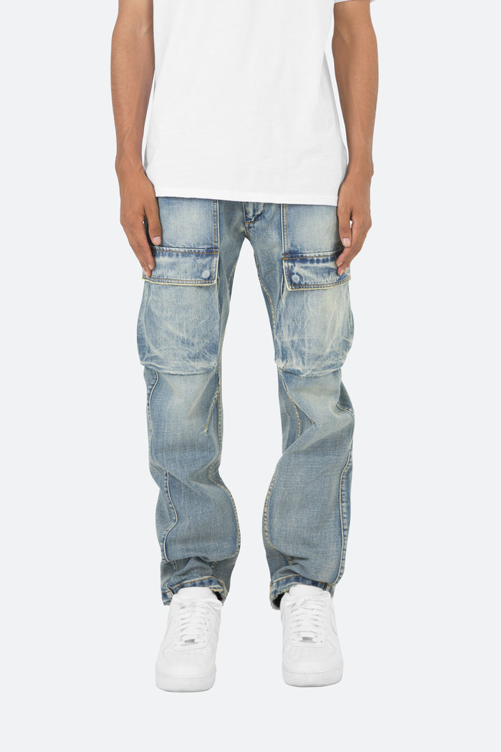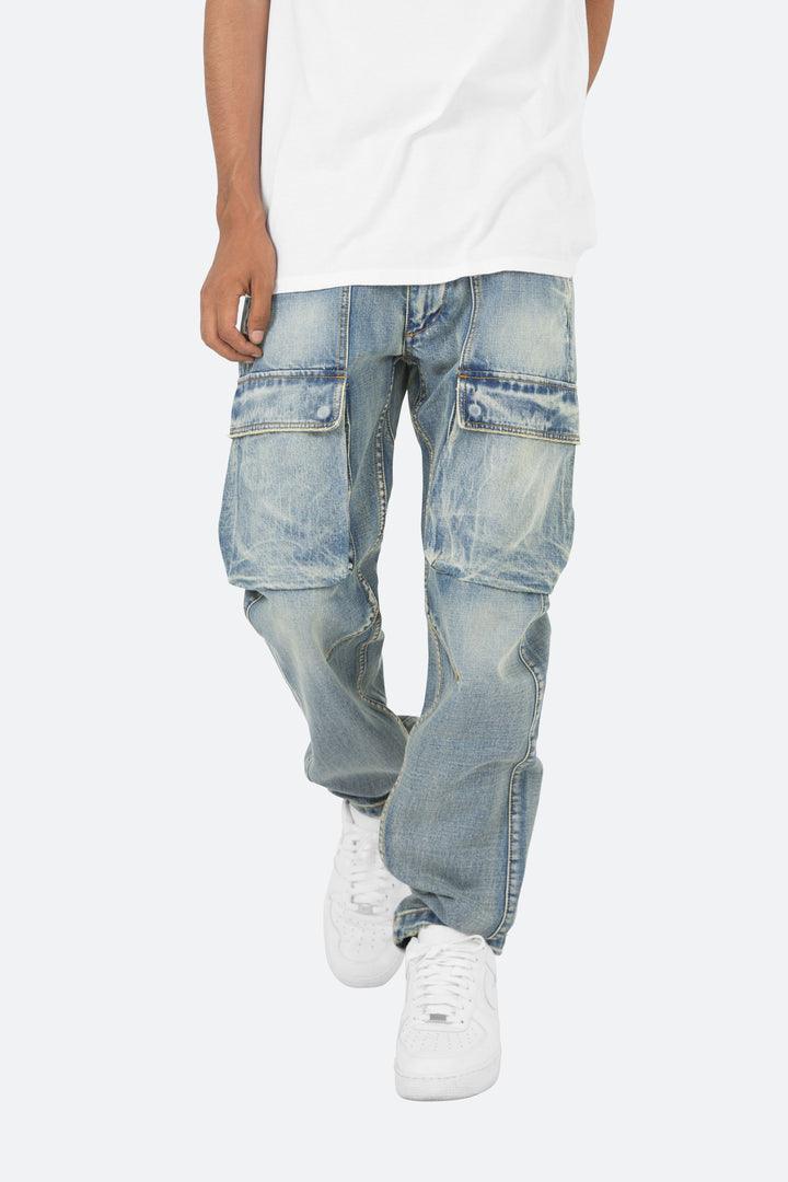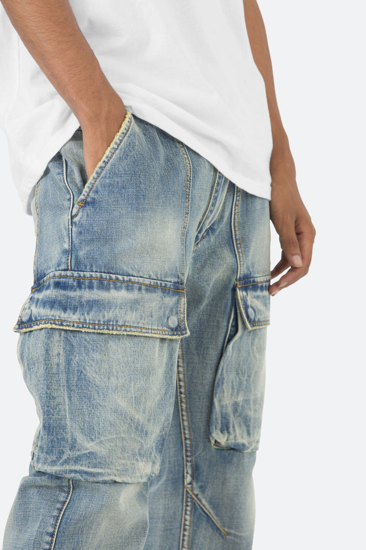 the V216 Cargo Denim is designed with our new V fit which is relaxed throughout with an extended inseam for stacking and features an elasticized waist, cargo pockets and paneling throughout.