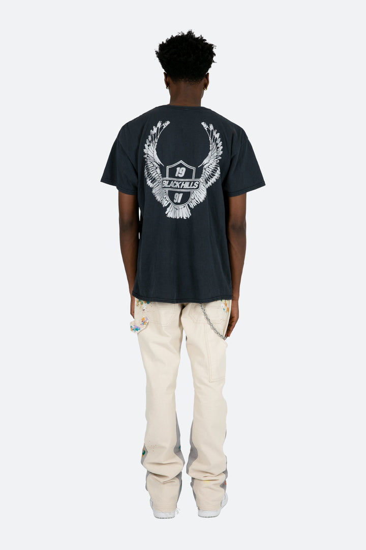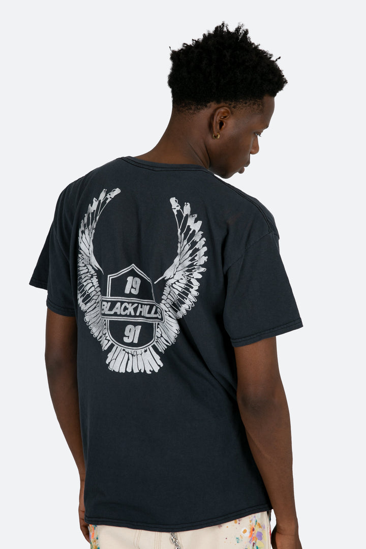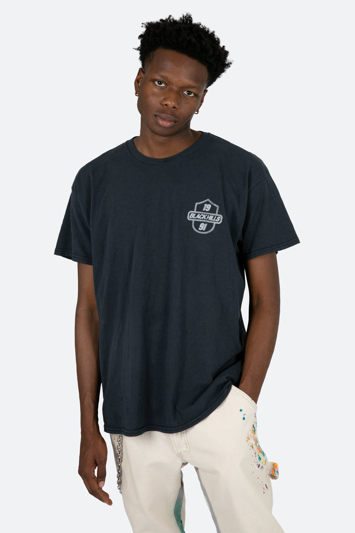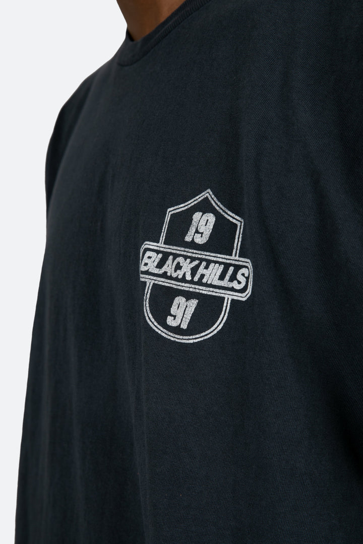 the Vintage Black Hills Tee features our custom-developed wash and screen print process that replicates a true vintage hand feel, color, and print. the tee is a relaxed fit with a standard hem and is printed and washed in the USA.