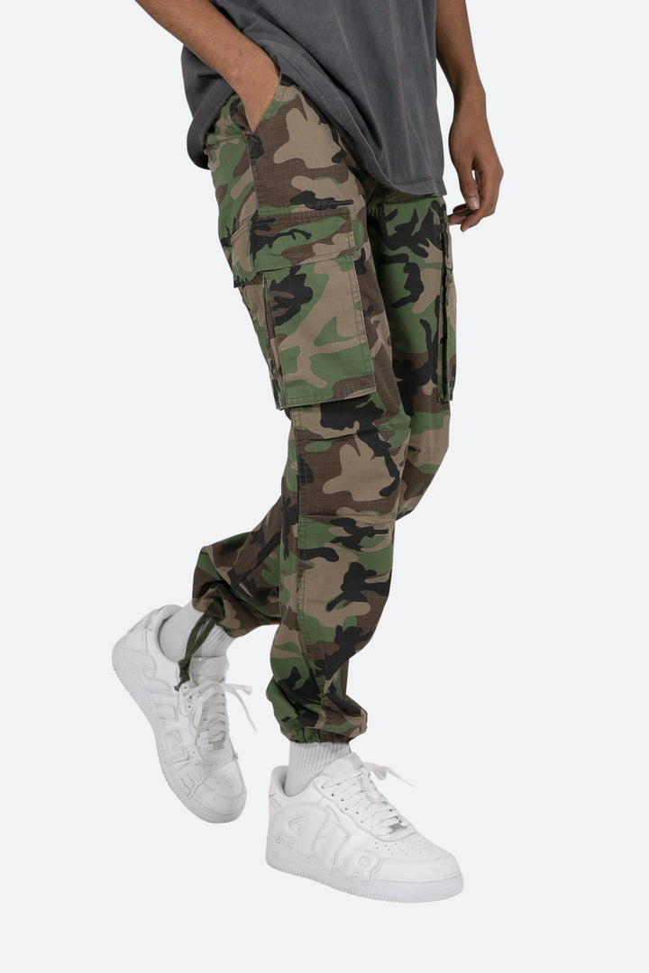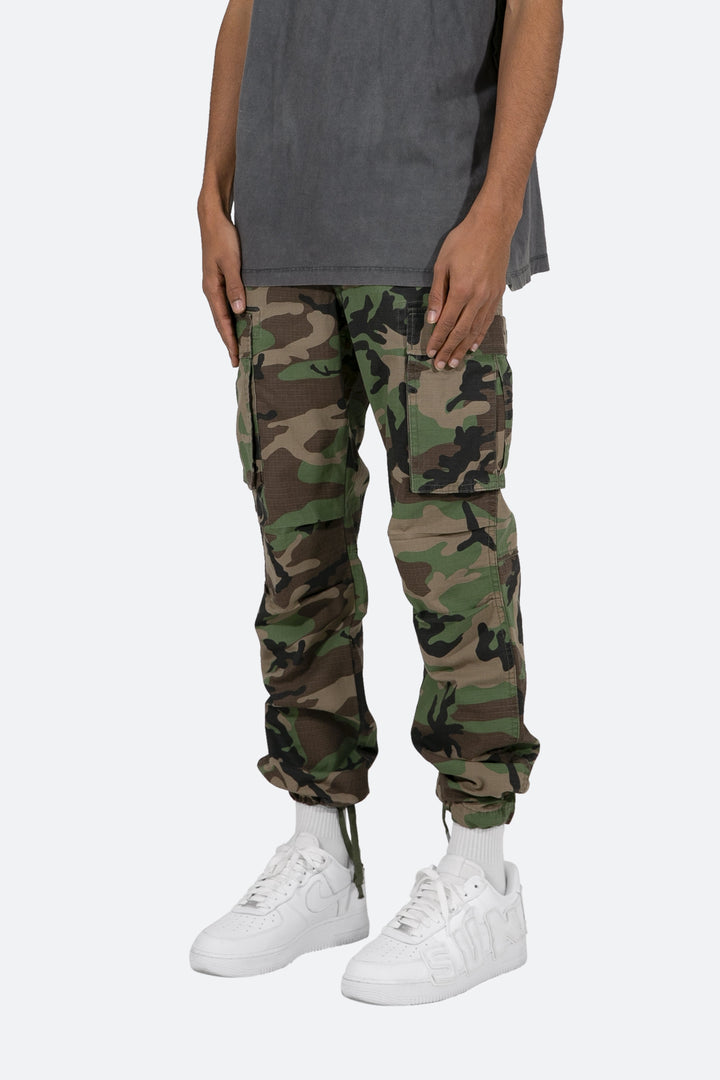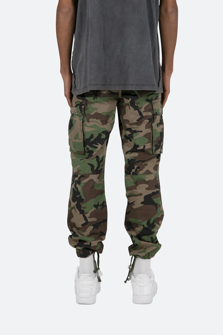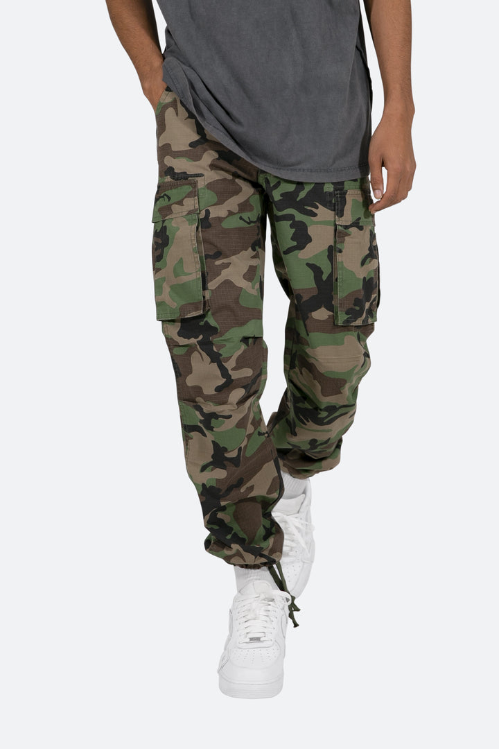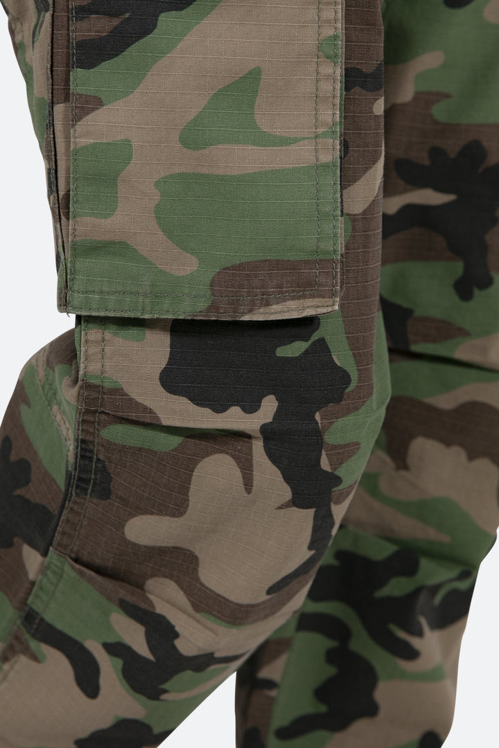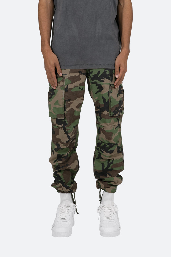 the Vintage Cargo Pants are designed with a relaxed fit throughout with gusseting at the knee, cargo pockets at the side seam, a cinch-able waistband, zipper fly, and finishing off with elastic and cargo drawcords at the leg openings.