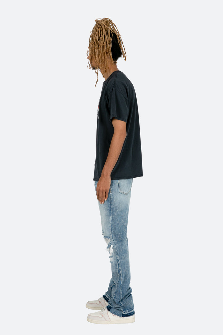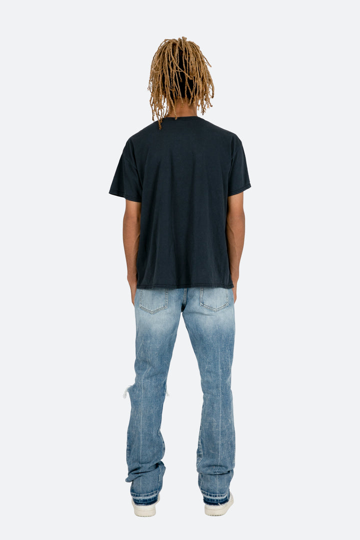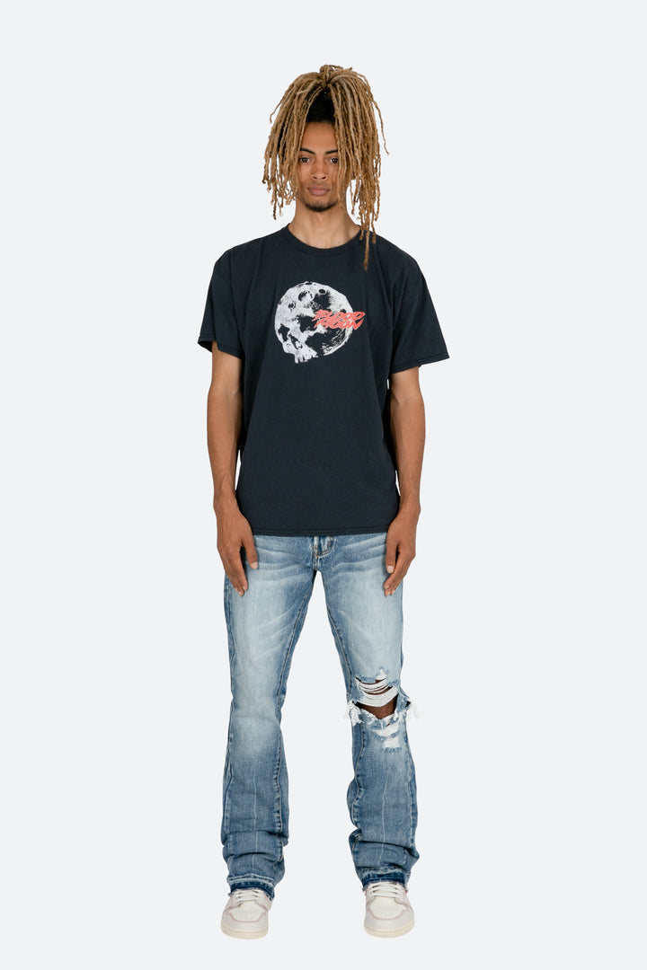 the Vintage Moon Tee features our custom-developed wash and screen print process that replicates a true vintage hand feel, color, and print. the tee is a relaxed fit with a standard hem and is printed and washed in the USA.