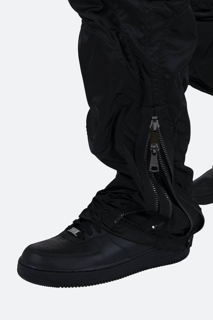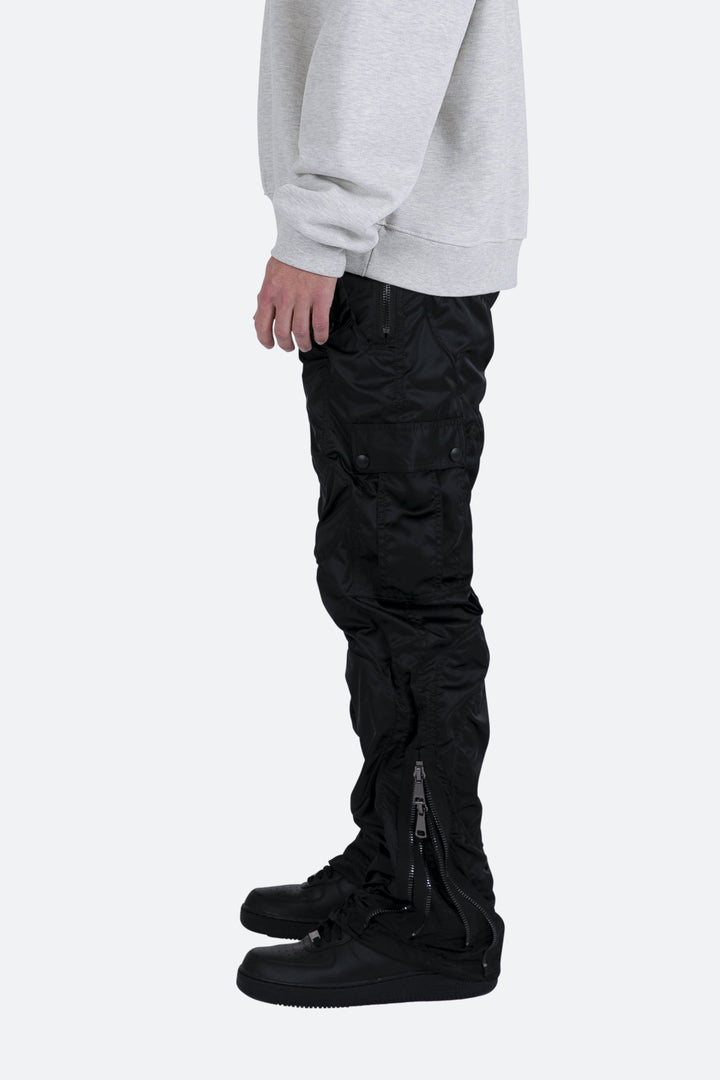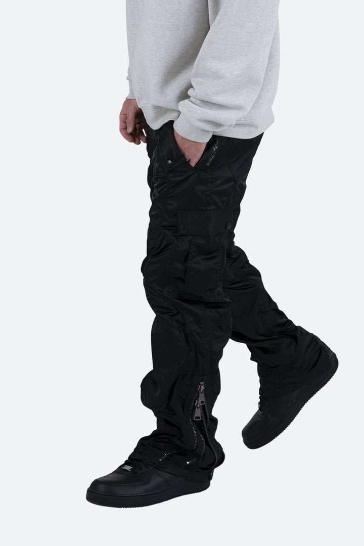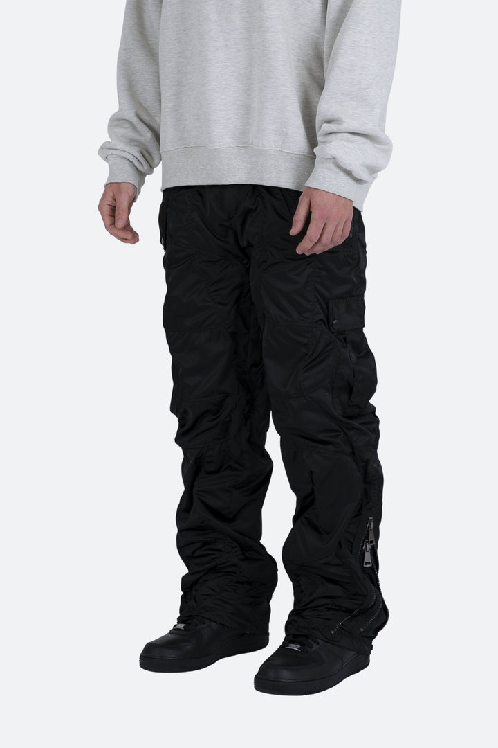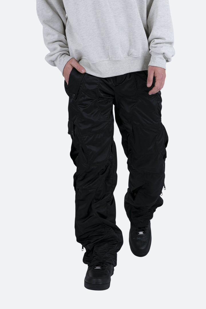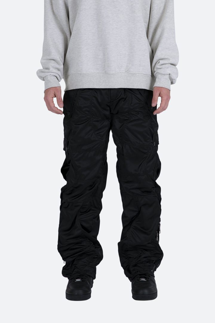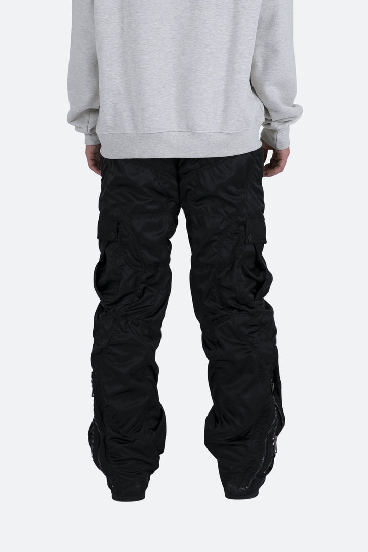 the Wired Cargo Pants are designed with a relaxed fit throughout with cargo pockets at the side seam, welt pockets at the hip, zipper pockets at the waist, double layer zipper closures at the outside leg opening, and finished with integrated wire details.